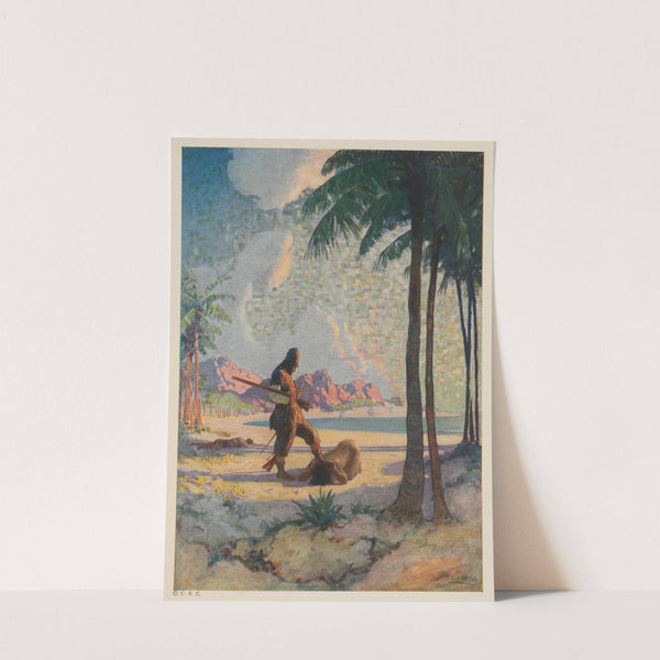 —and then he kneeled down again, kissed the ground, and taking me by the foot, set my foot upon his head by N. C. Wyeth - Wall Art Print