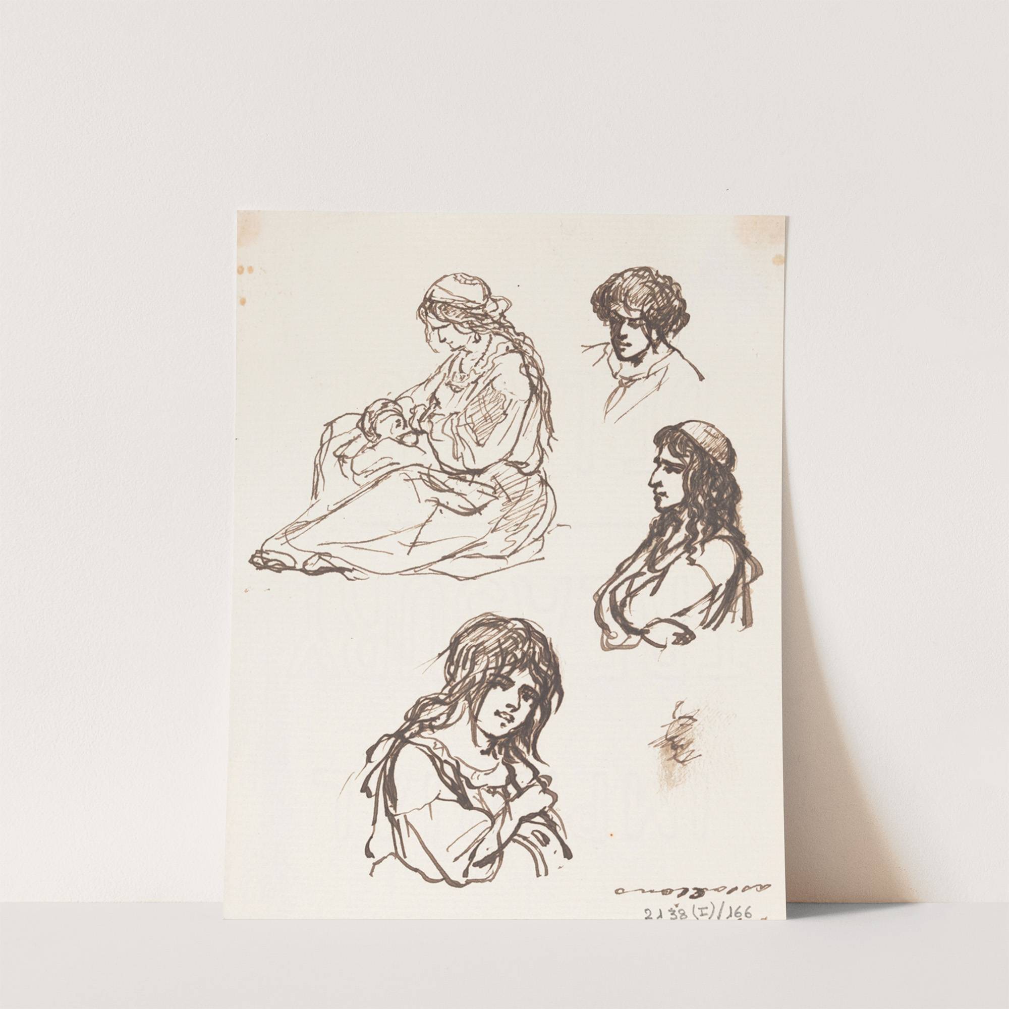 Mother and Child and Three Busts by Nicaise De Keyser - Wall Art Print