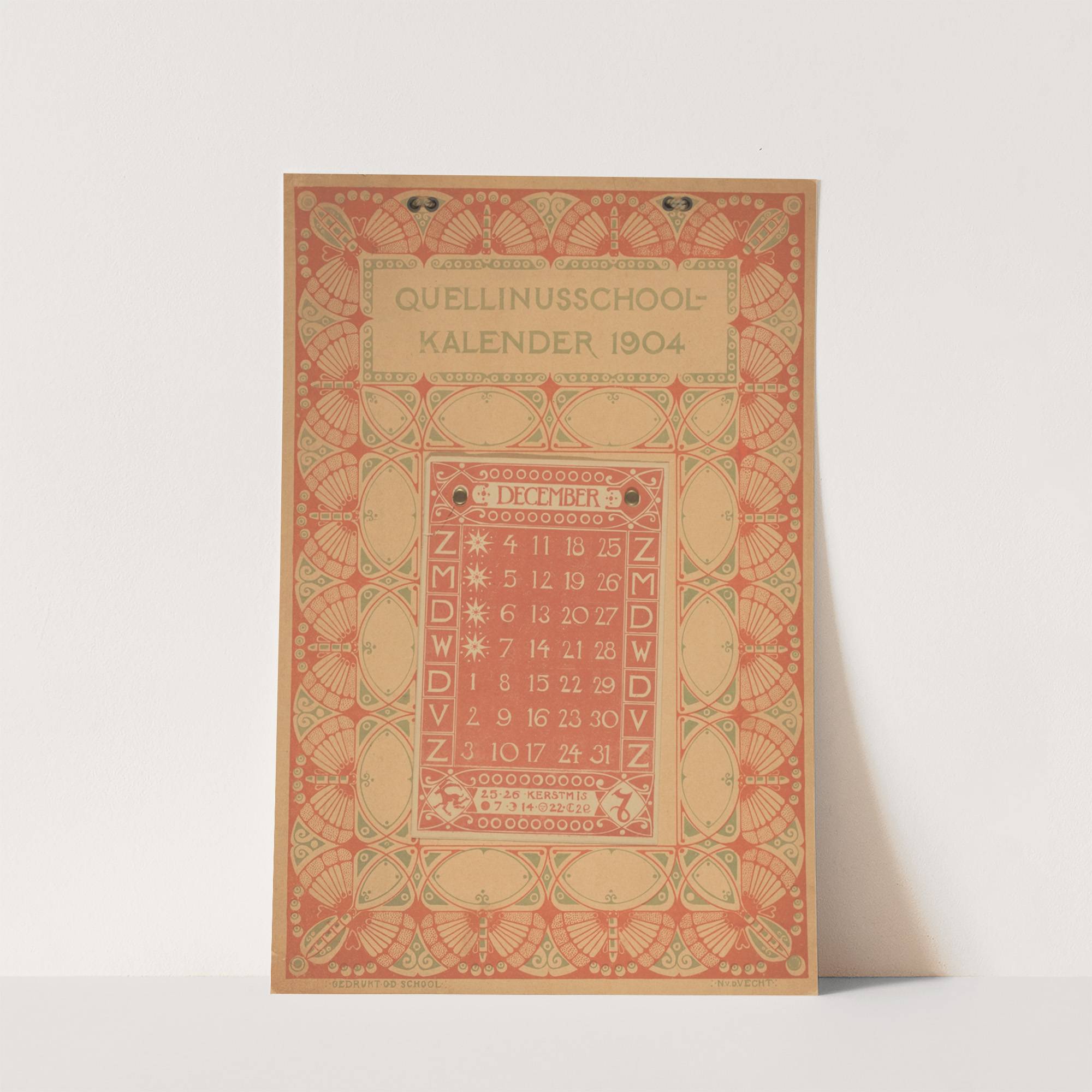 Kalender van de Quellinusschool voor december 1904 by Nicolaas van de Vecht - Wall Art Print