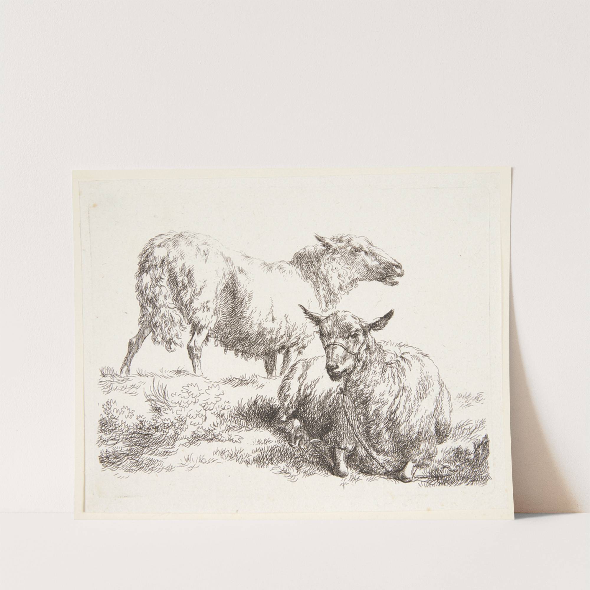 Et stående og et liggende får by Nicolaes Pietersz. Berchem - Wall Art Print