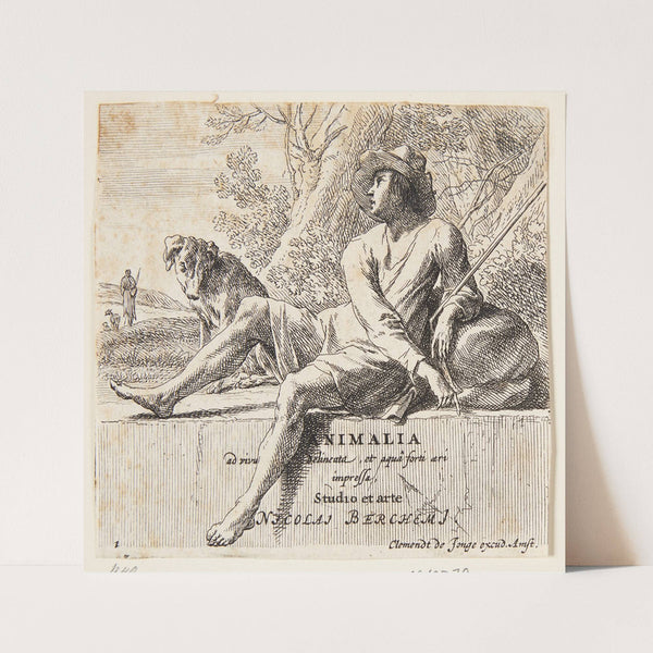 Fårehyrde siddende på en sten Titelblad til Forskellige dyr by Nicolaes Pietersz. Berchem - Wall Art Print