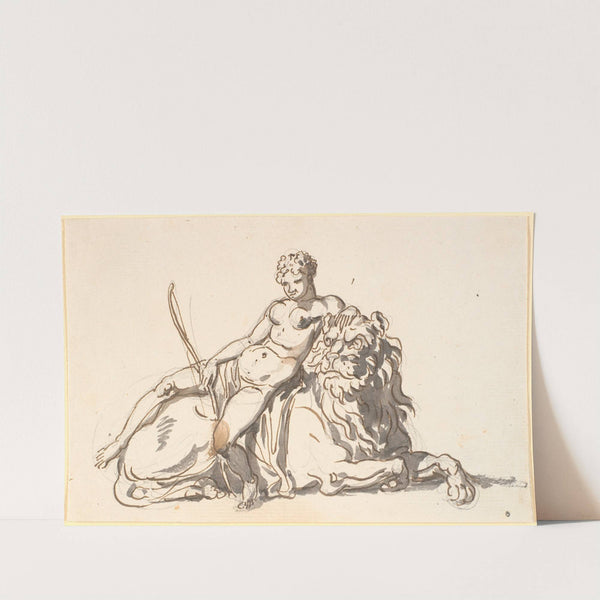 En sort afrikansk kvinde, hvilende på en løve Allegori på Afrika by Nicolai Abildgaard - Wall Art Print