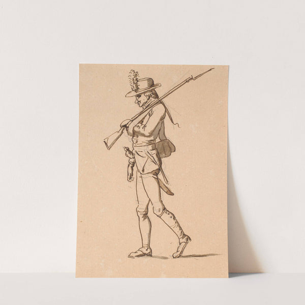 Karikatur af en soldat i profil til venstre Hans venstre arm ligger i bind, men bærer dog et gevær by Nicolai Abildgaard - Wall Art Print