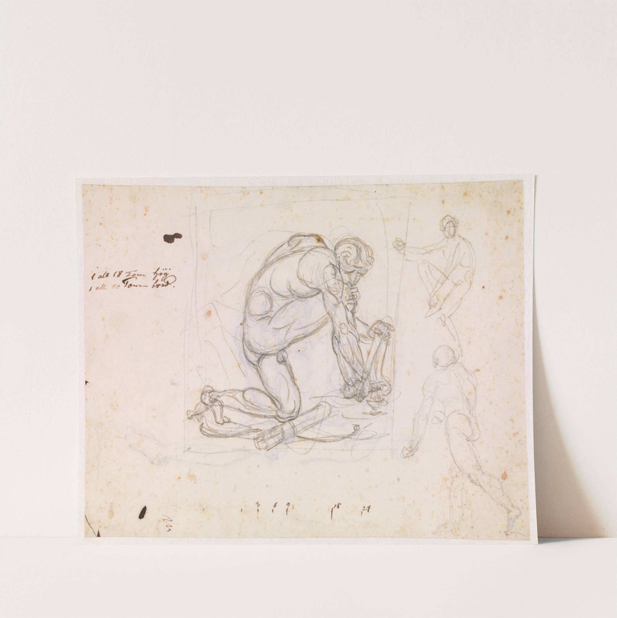 Studie til Den sårede Filoktet, samt et par andre studier af nøgne mandsfigurer by Nicolai Abildgaard - Wall Art Print