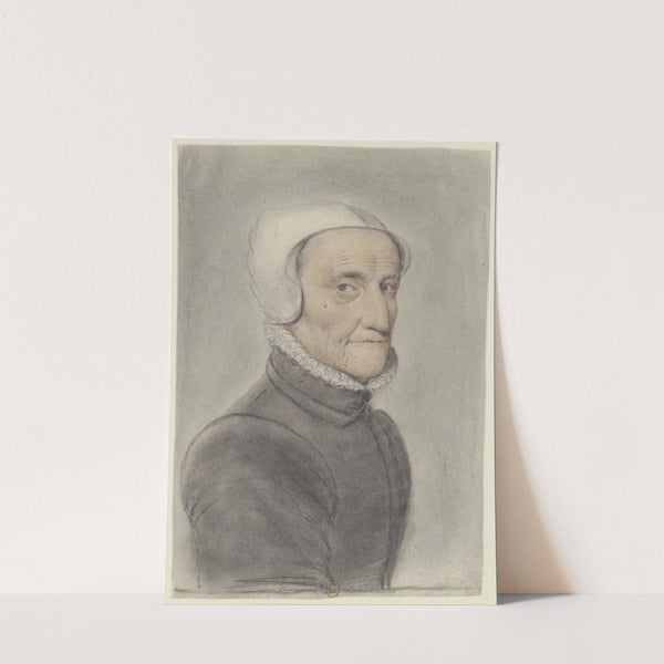 Vieille femme portant un vêtement noir à petite fraise et un chaperon blanc, de trois quarts à droite by Nicolas Lagneau - Wall Art Print