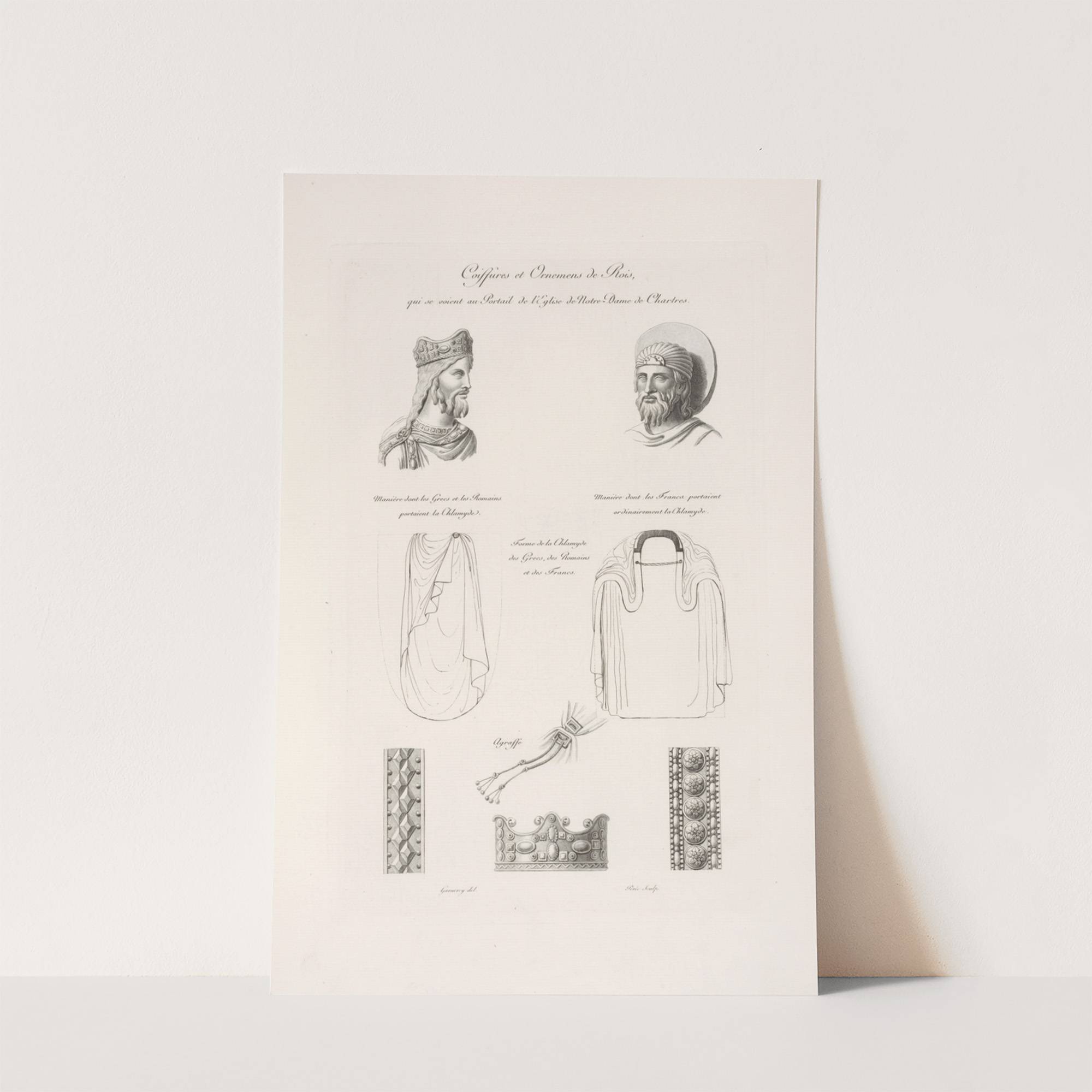 Coiffures et ornemens de rois, qui se soient au portail de l’église de Notre-Dame de Chartres. by Nicolas Xavier Willemin - Wall Art Print
