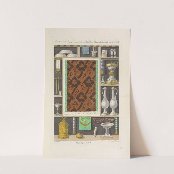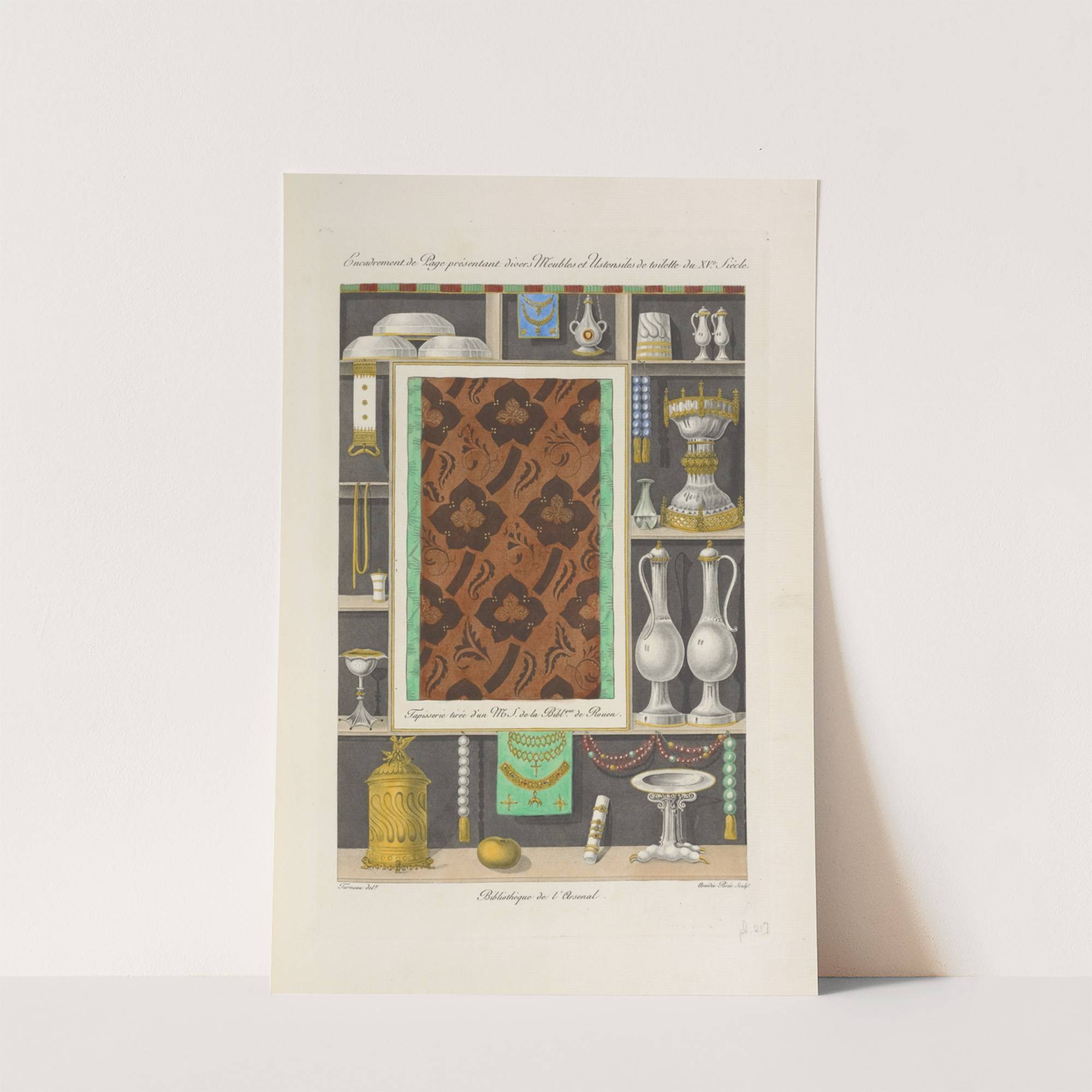 Encadrement de page présentant divers meubles et ustensiles de toilette du XVe. siècle. by Nicolas Xavier Willemin - Wall Art Print
