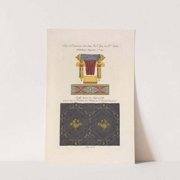 Sièges et ornemens tirés d’un MS. grec du IXme. siècle, […] Étoffe tissue de soye et d’or, trouvée dans un tombeau […] by Nicolas Xavier Willemin - Wall Art Print