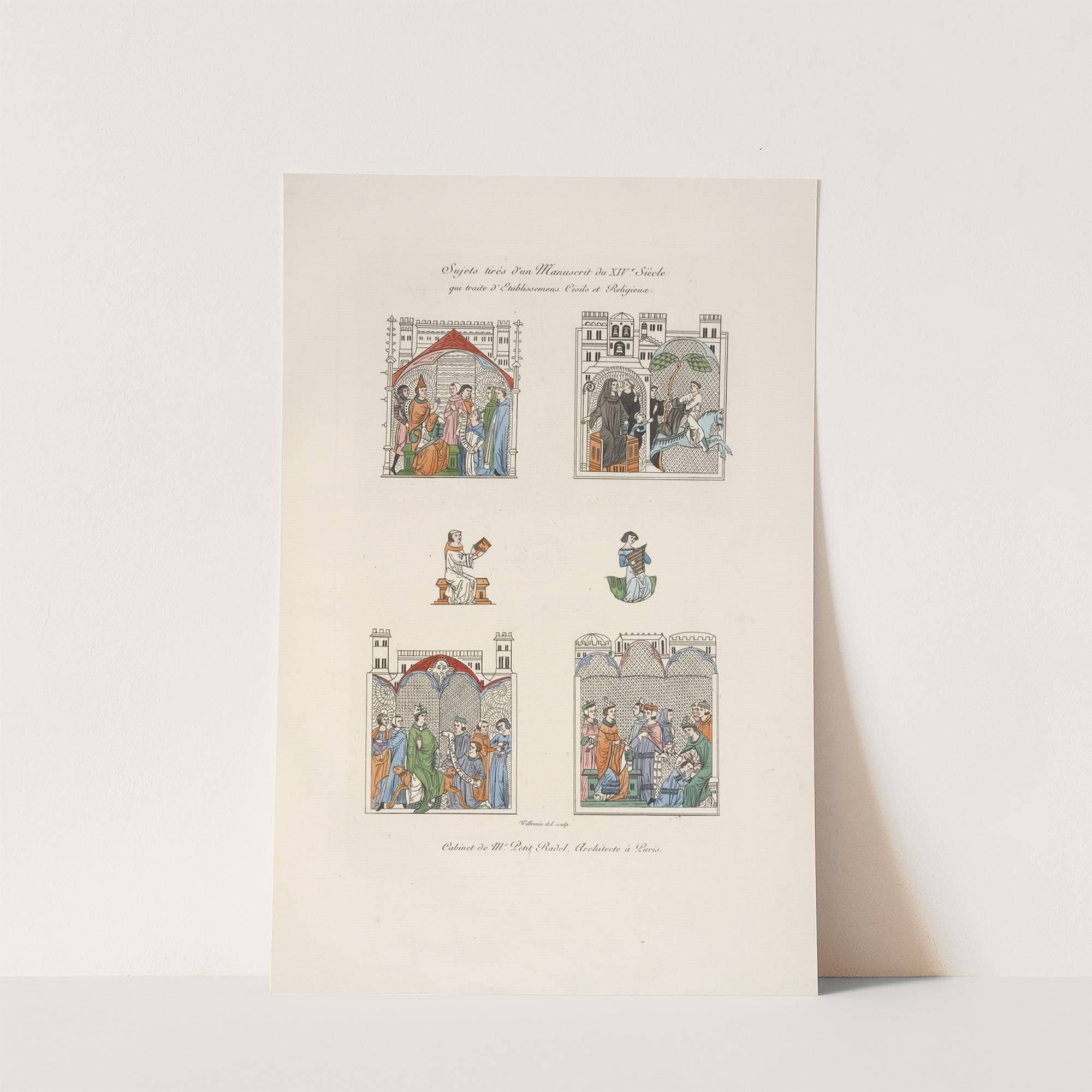 Sujets tirés d’un manuscrit du XIVe. siècle qui traite d’établissemens civils et religieux. by Nicolas Xavier Willemin - Wall Art Print