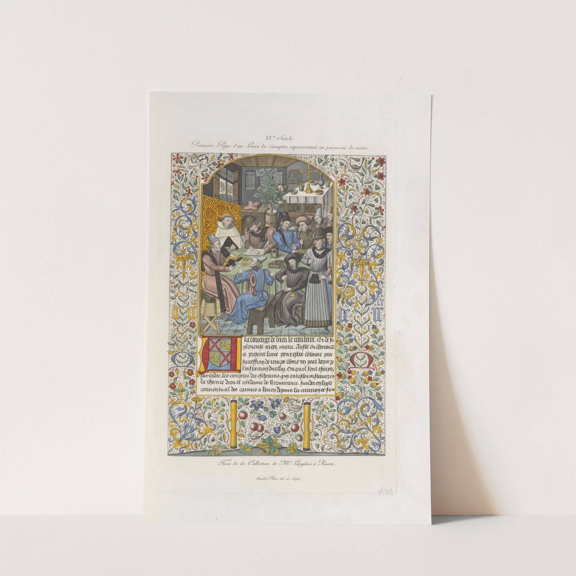 XVe. siècle. Première page d’un livre de comptes, représentant un paiement de rentes. Tirée de la collection de Mr. Langlois, à Rouen. by Nicolas Xavier Willemin - Wall Art Print