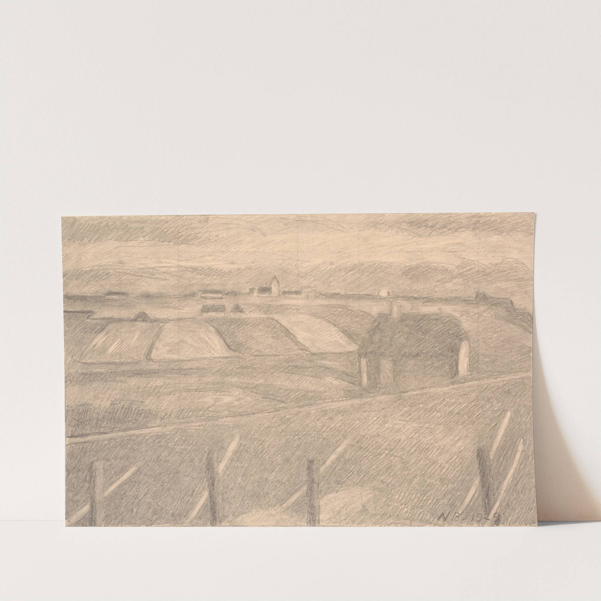 Landskab ved Ferring, fyrtårnet tændt (1929) by Niels Bjerre - Wall Art Print