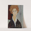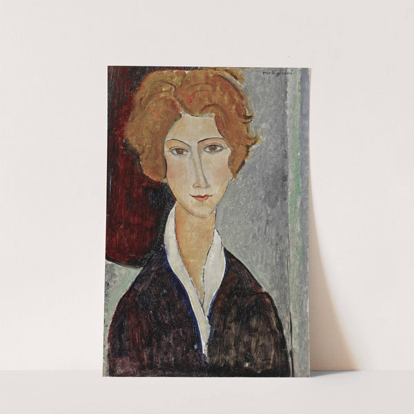 This artwork is "Portrait de Femme" by the renowned artist Amedeo Modigliani, created in circa 1917-18. The painting features a delicate and elegant portrait of a woman with short, wavy brown hair that frames her face. Her complexion is fair,...