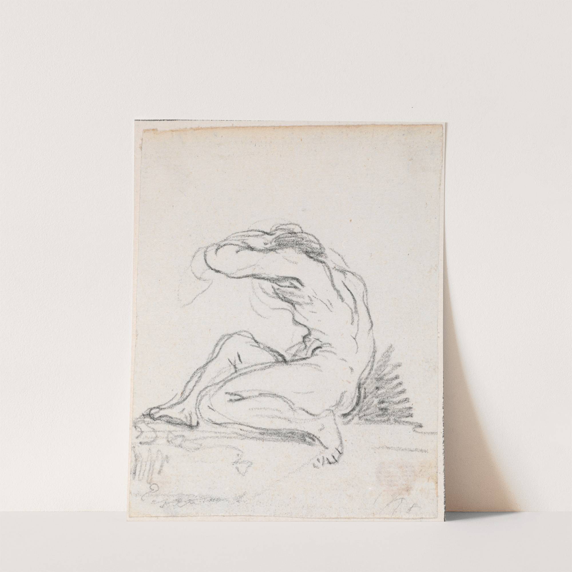 Seated Male Nude with Arm over Head, Seen from the Side by Hubert Robert - Wall Art Print