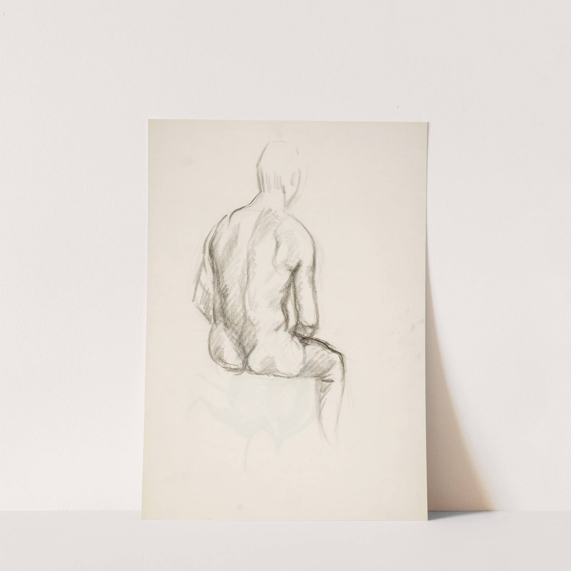 This striking black-and-white sketch captures the subtle yet powerful essence of human form in "Selkäharjoitelma" by Alfred William Finch. The artist employs delicate, soft pencil strokes to outline the figure seated, viewed from behind. The emphasis is on the back...