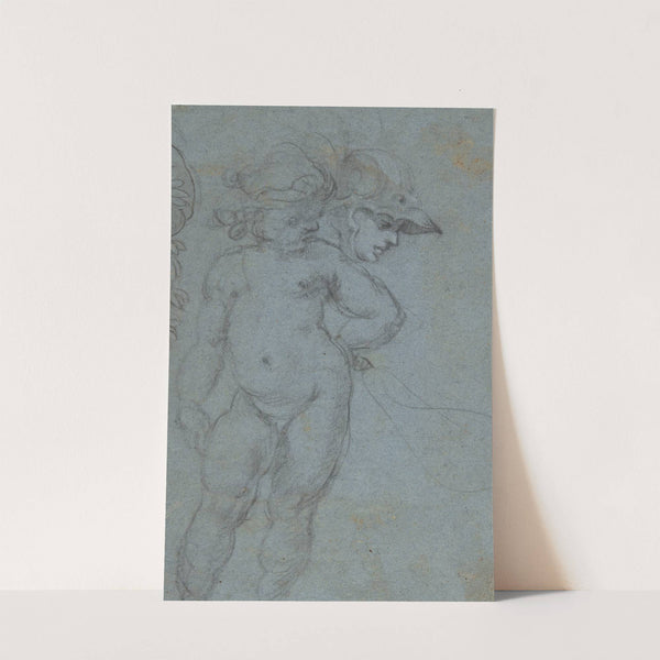 Standing Nude Putto and Study of a Helmeted Head by Domenico Gargiulo - Wall Art Print