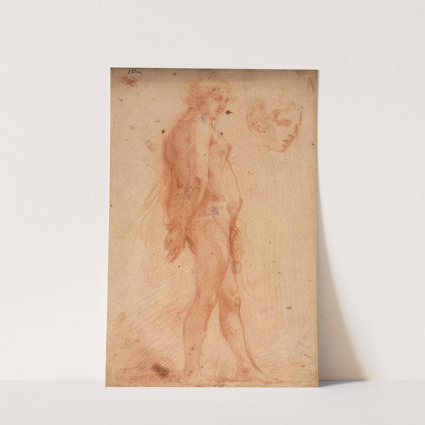 Study of a Standing Male Nude, with a Study of Head in Three-Quarter Profile by Cecco Bravo - Wall Art Print