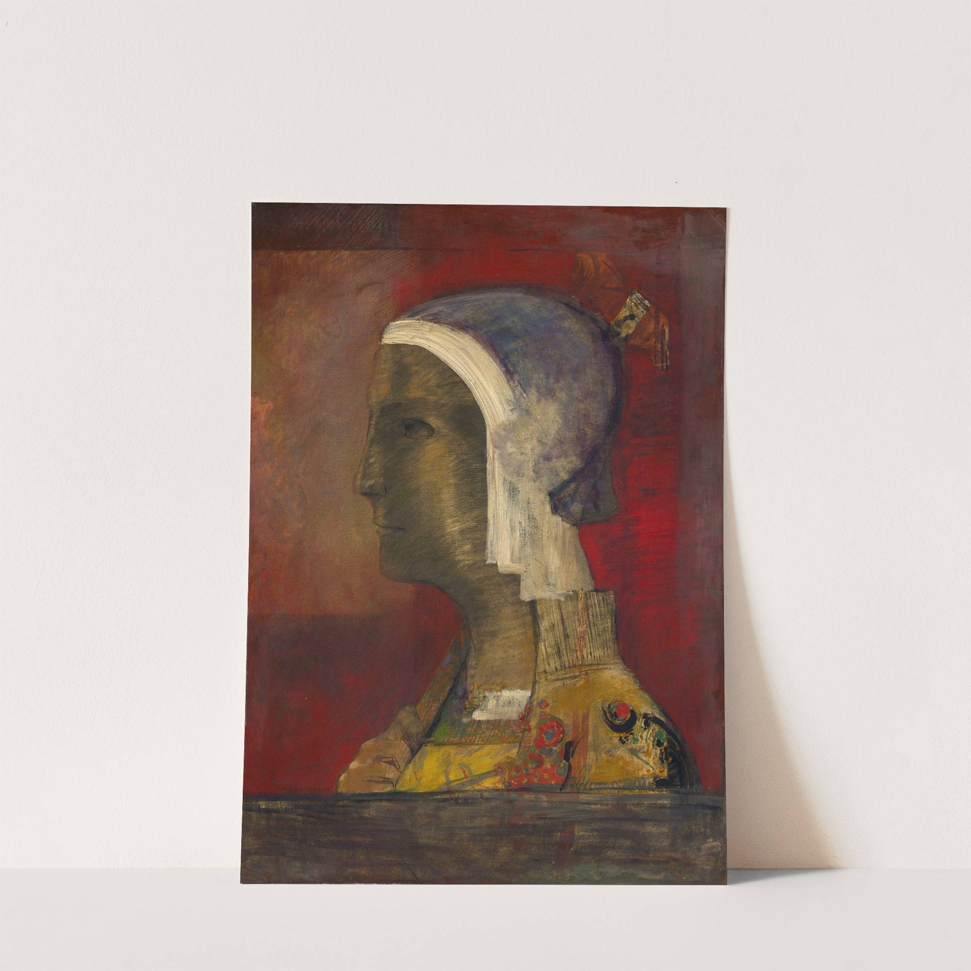 This striking art print features "Symbolic Head" by Odilon Redon, a masterpiece that captures the essence of portrait painting with a modern twist. The subject is a profile view of a woman, rendered in rich, deep colors that create a...