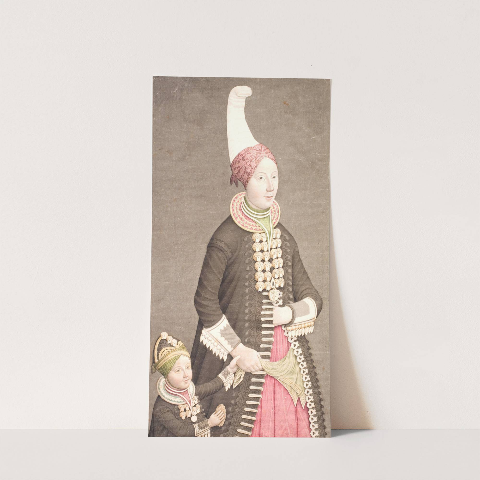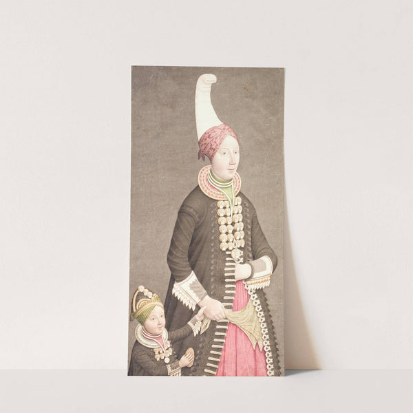 Kvinde og pige iført islandsk dragter by Olavius - Wall Art Print