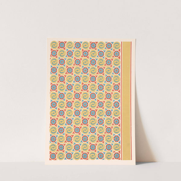 Introducing "Plafond du Tombeau D'amenheb" by the talented artist Gustave Jequier, a vibrant and intricately designed art print that brings a burst of color to any space. This captivating piece features a repetitive pattern of circular motifs arranged in an...