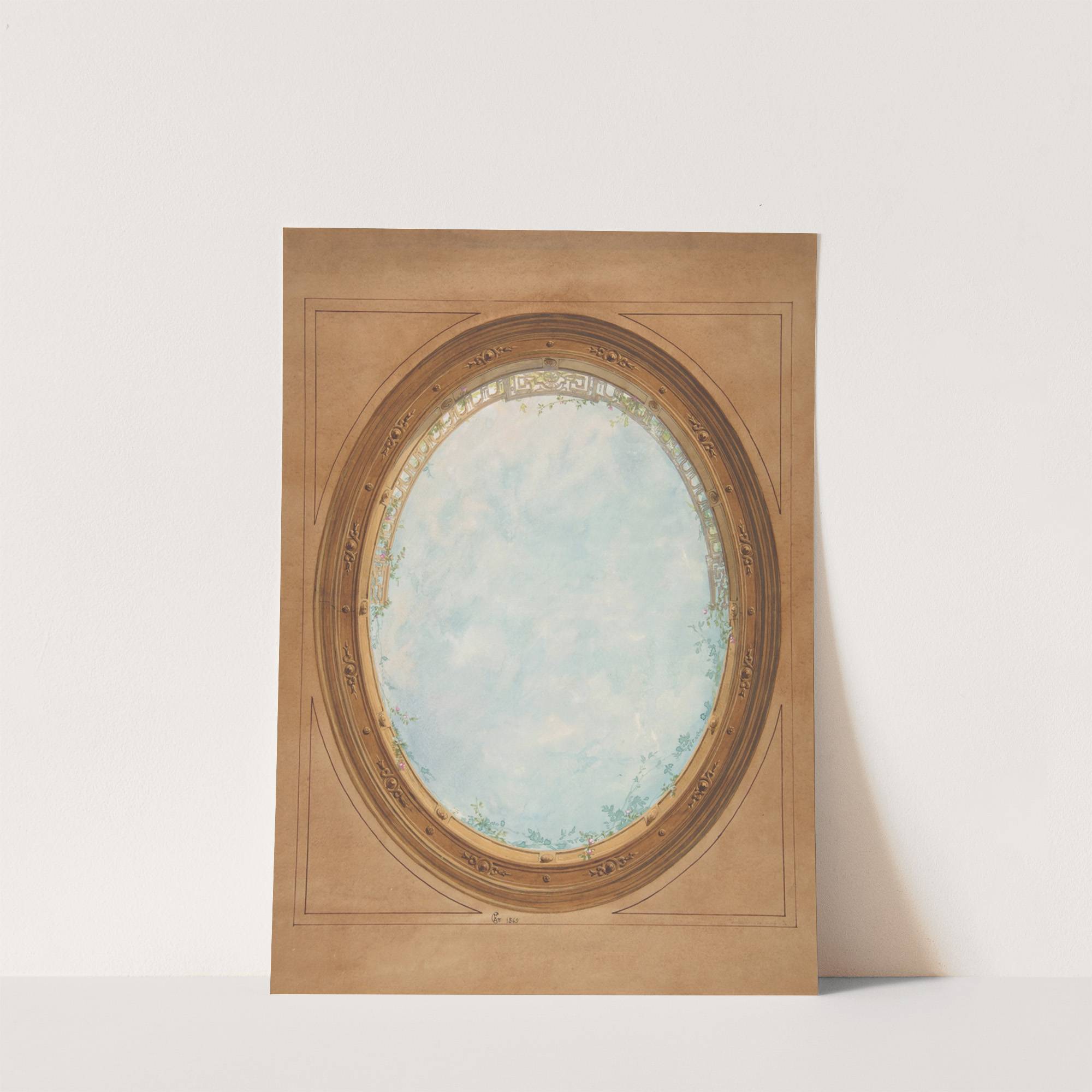 Design for a ceiling with trompe l’oeil balustrade and sky by Jules-Edmond-Charles Lachaise - Wall Art Print