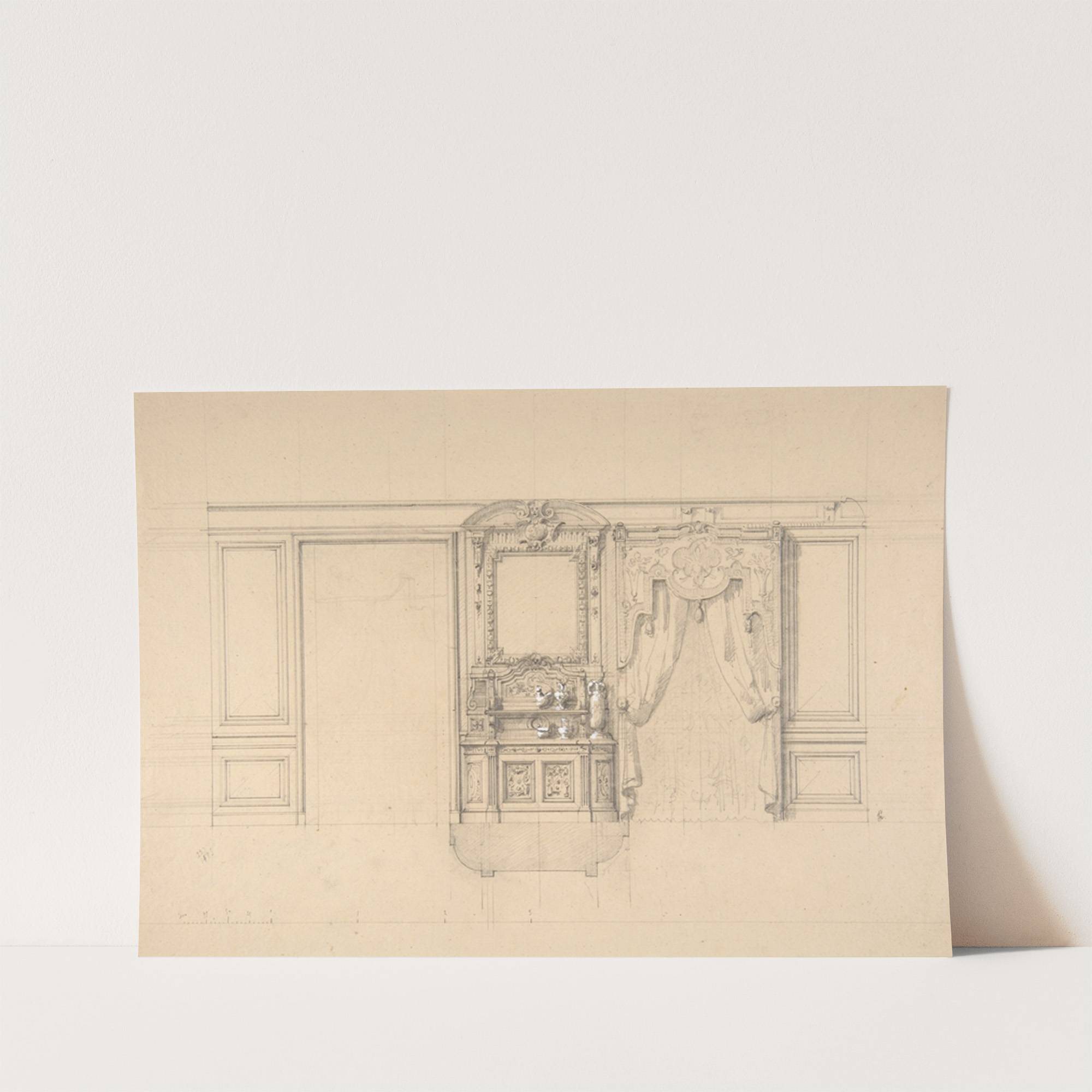 Elevation of a dining room with a carved buffet and window draperies by Jules-Edmond-Charles Lachaise - Wall Art Print