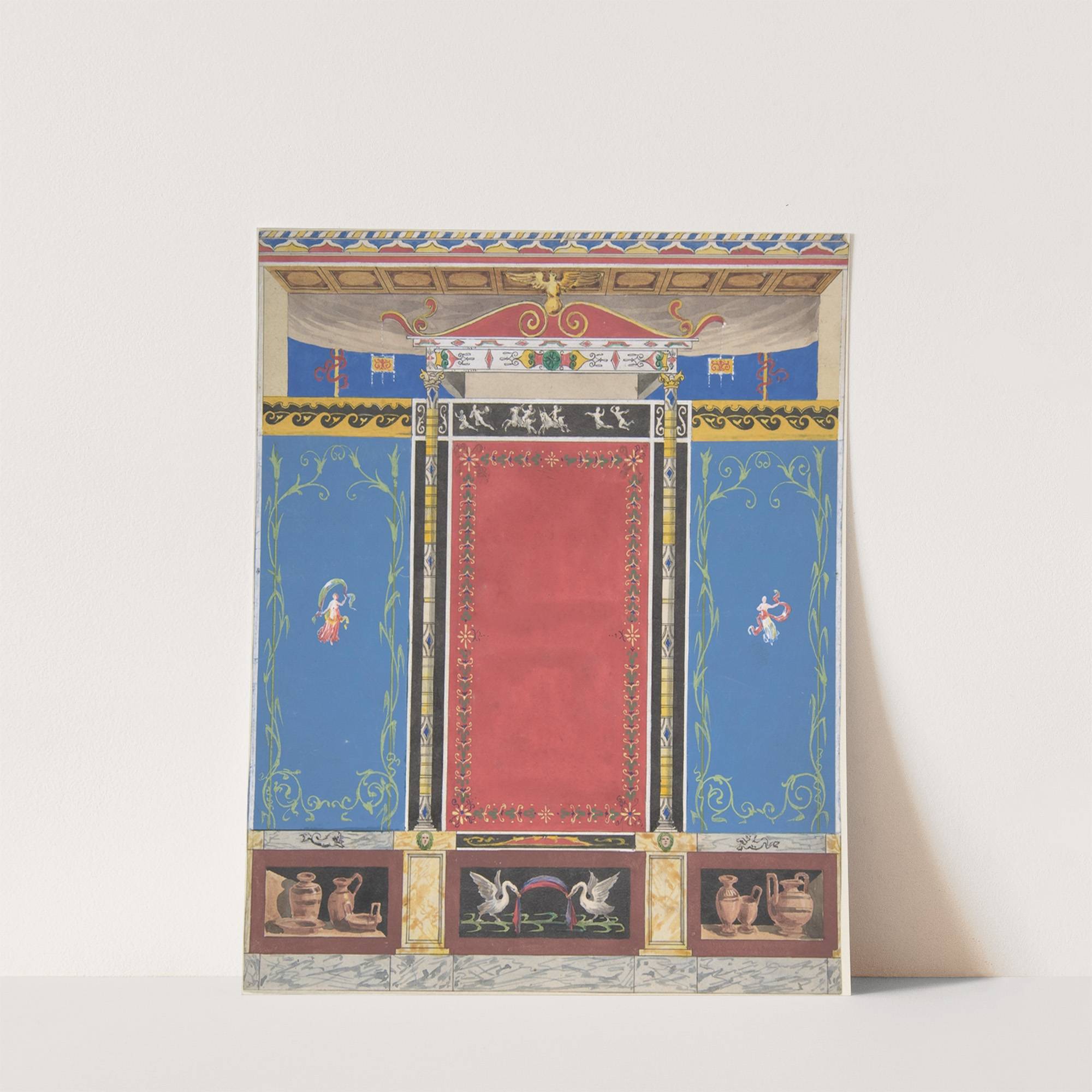 Painted Wall Decor Featuring Thin Column with a Pair of Swans and Trompe L’Oeil Vases at Base by Jules-Edmond-Charles Lachaise - Wall Art Print