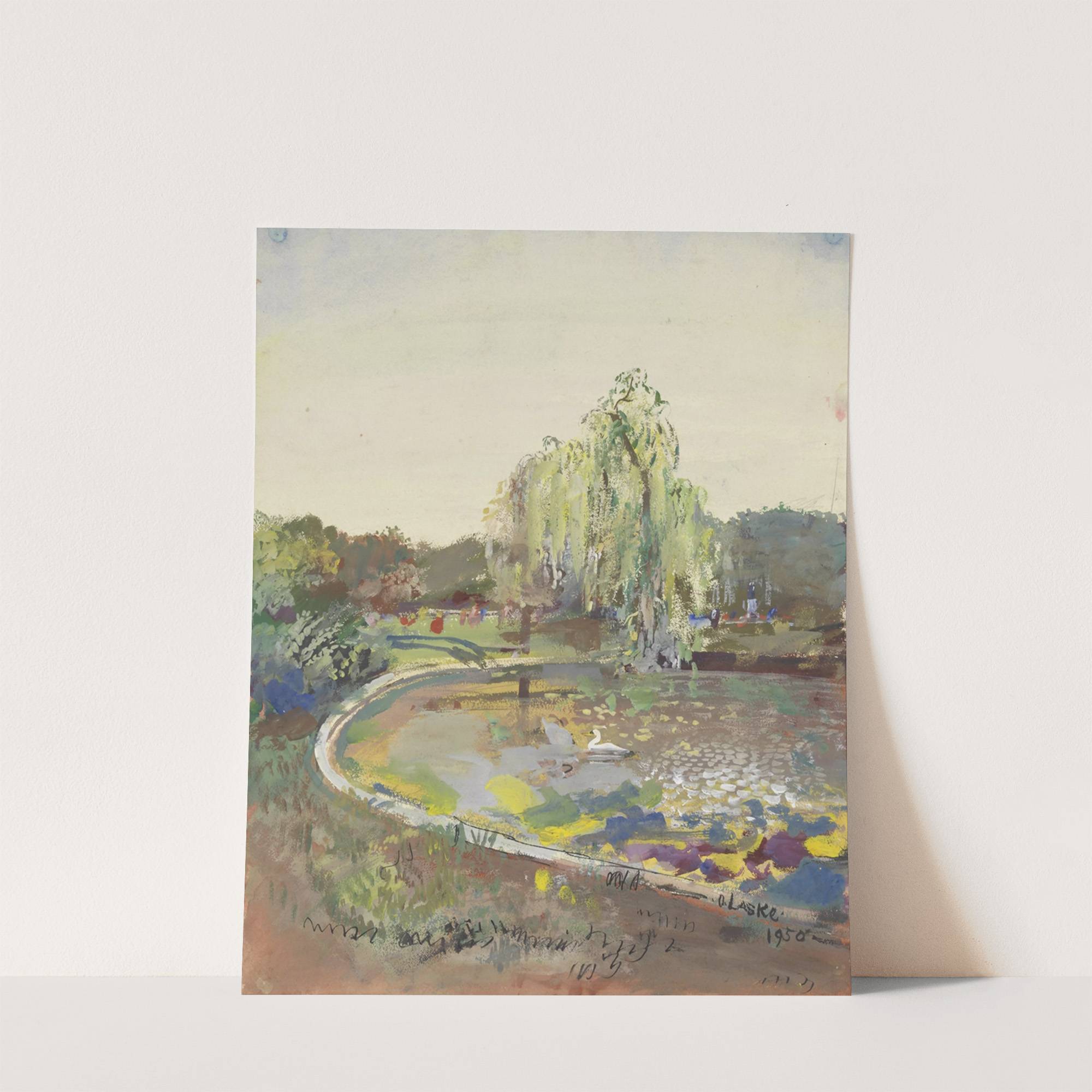 Introduce your space to the tranquil beauty of nature with this vibrant watercolor painting titled "I. Stadtpark (1950)" by artist Oskar Laske. This stunning piece captures a serene park landscape, featuring a gently curving path that meanders through lush, verdant...