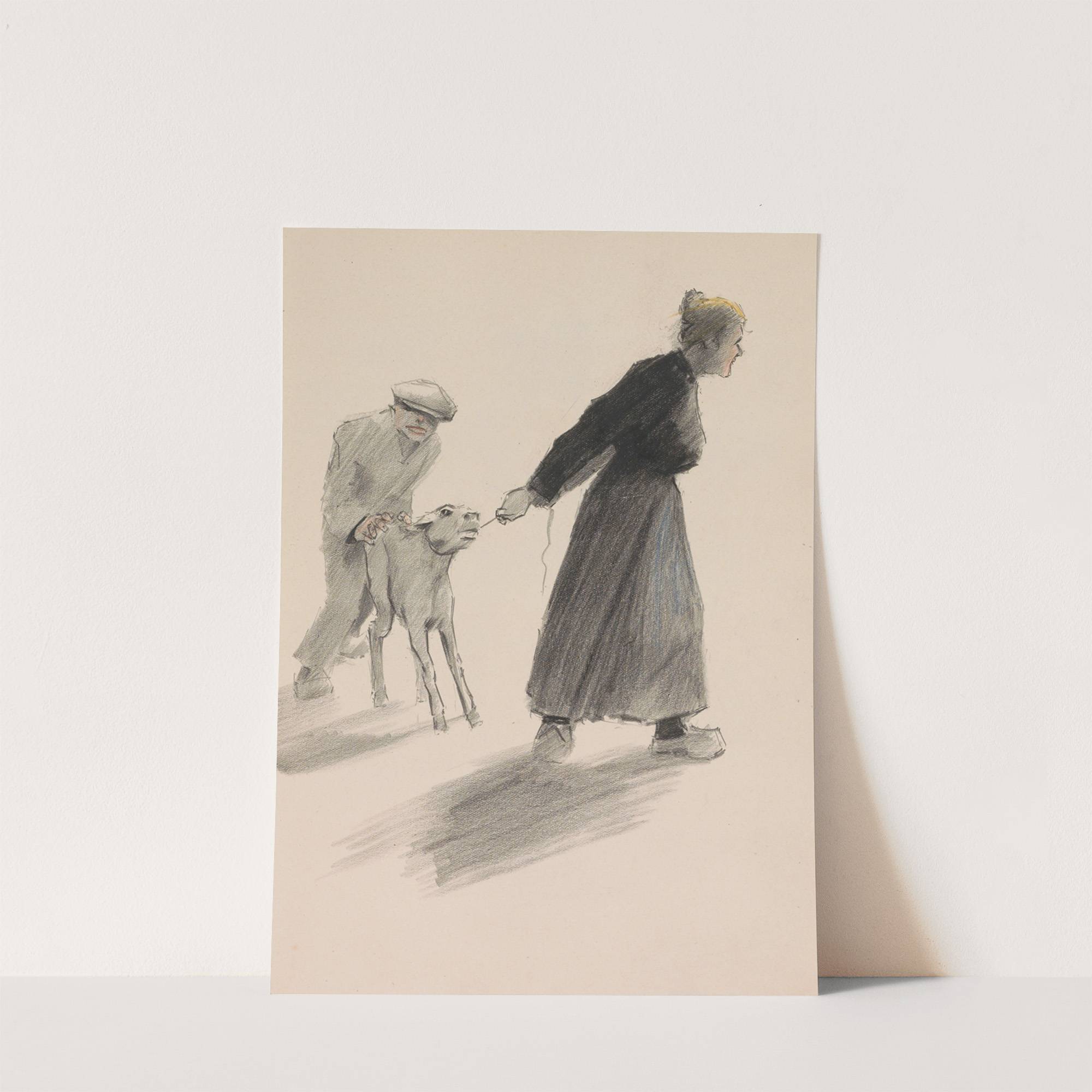 Boerin die een kalf achter zich aan trekt aan een touw (1917-1919) by Otto Verhagen - Wall Art Print