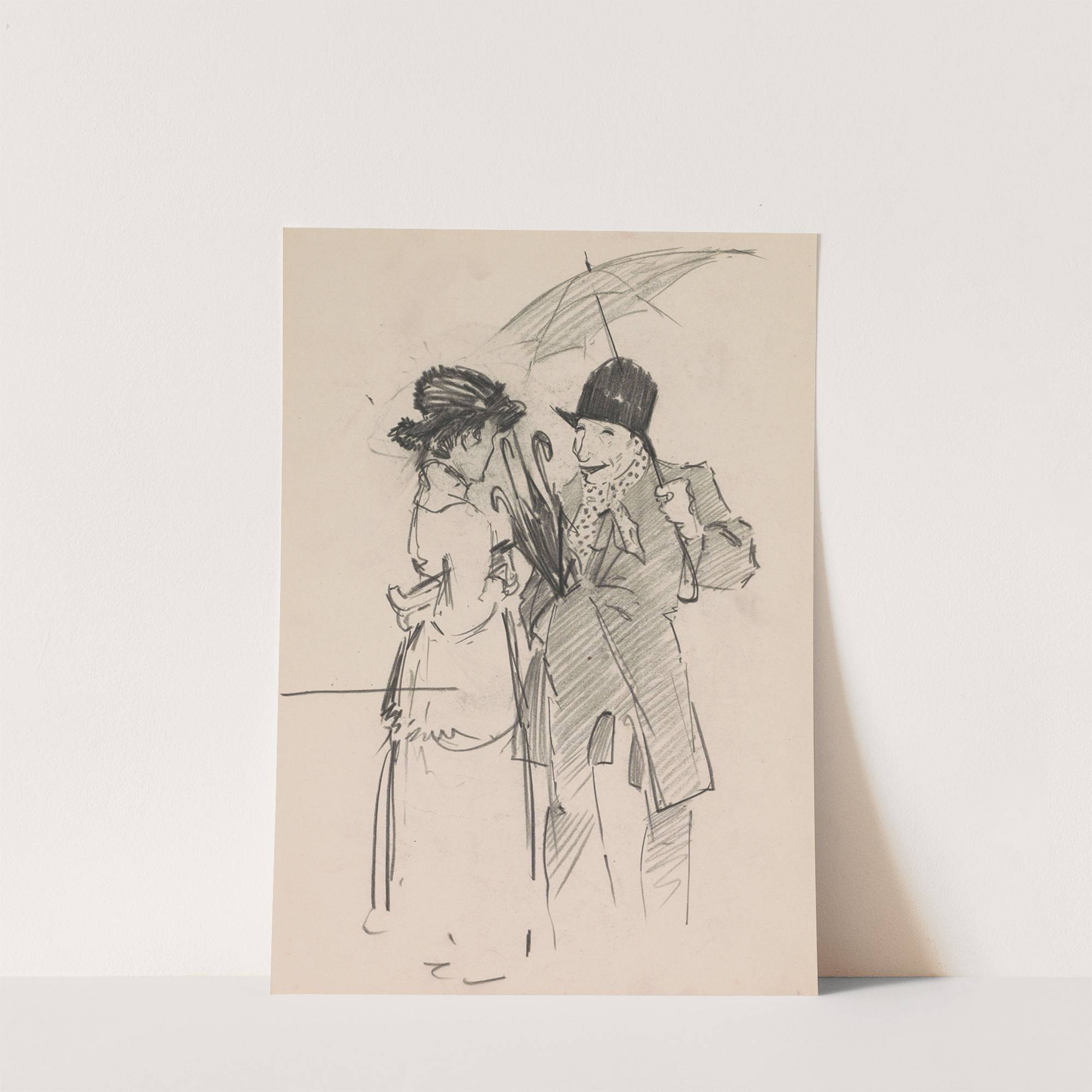 Woman talking to a man with an umbrella (1917-1919) by Otto Verhagen - Wall Art Print