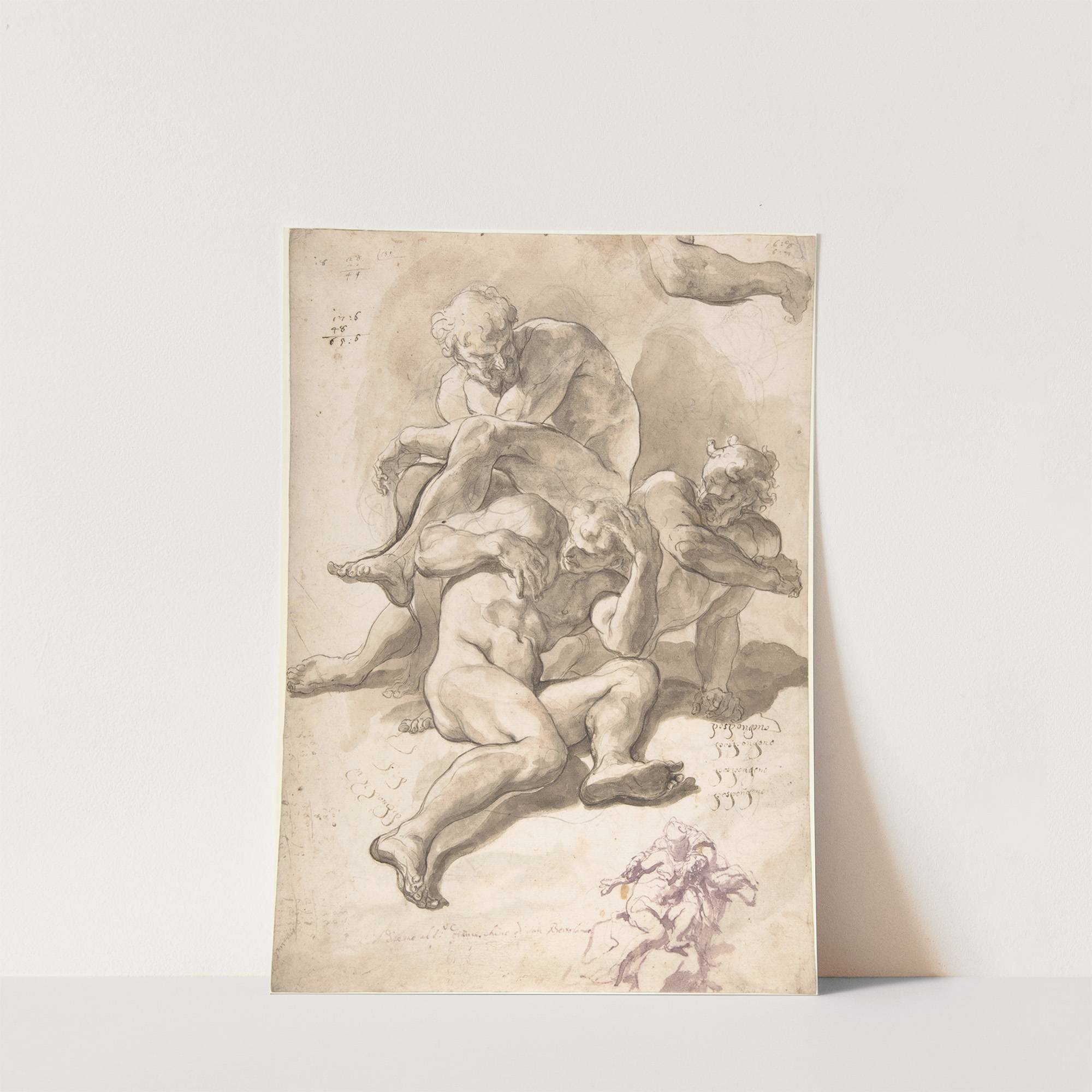 Studies of Three Naked Men, a Right Arm and a Nude Figure Supported by Another by Paolo Pagani - Wall Art Print