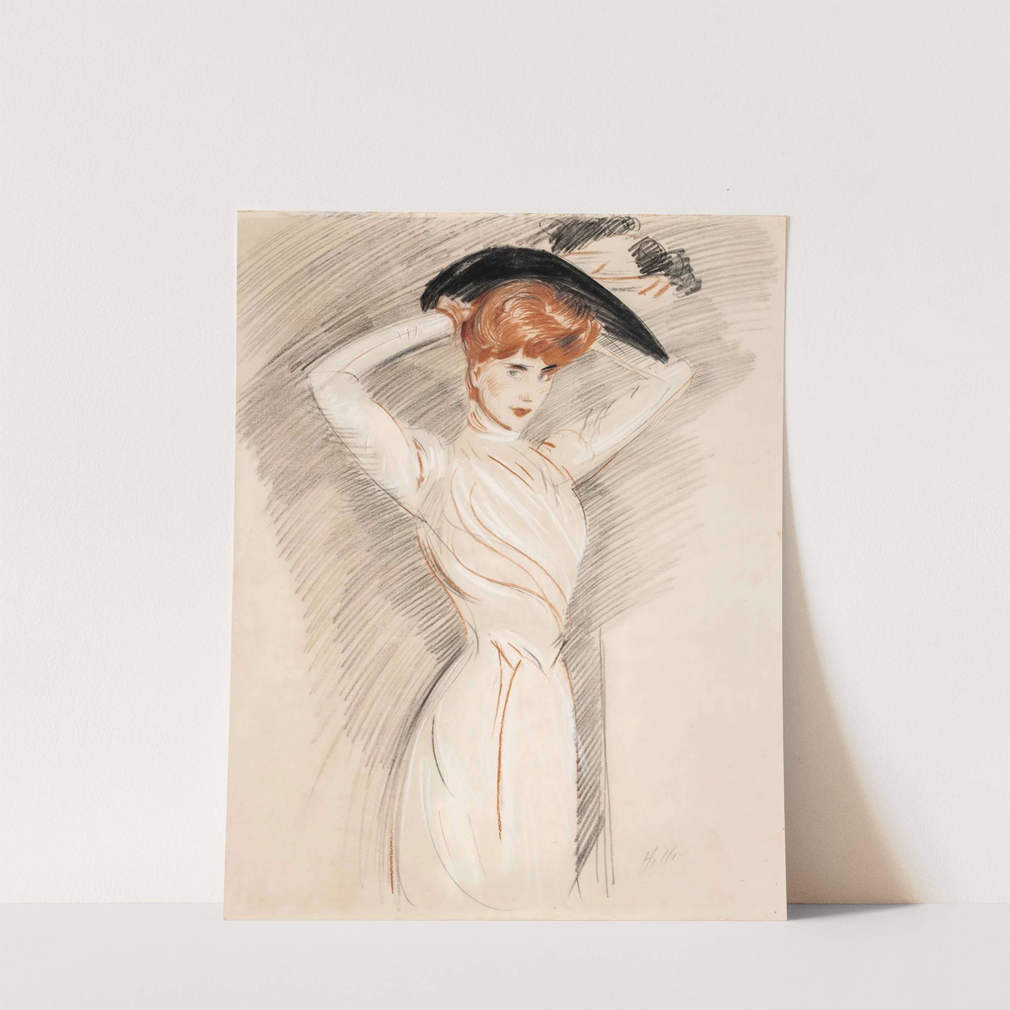 An elegant lady wearing a hat by Paul César Helleu - Wall Art Print