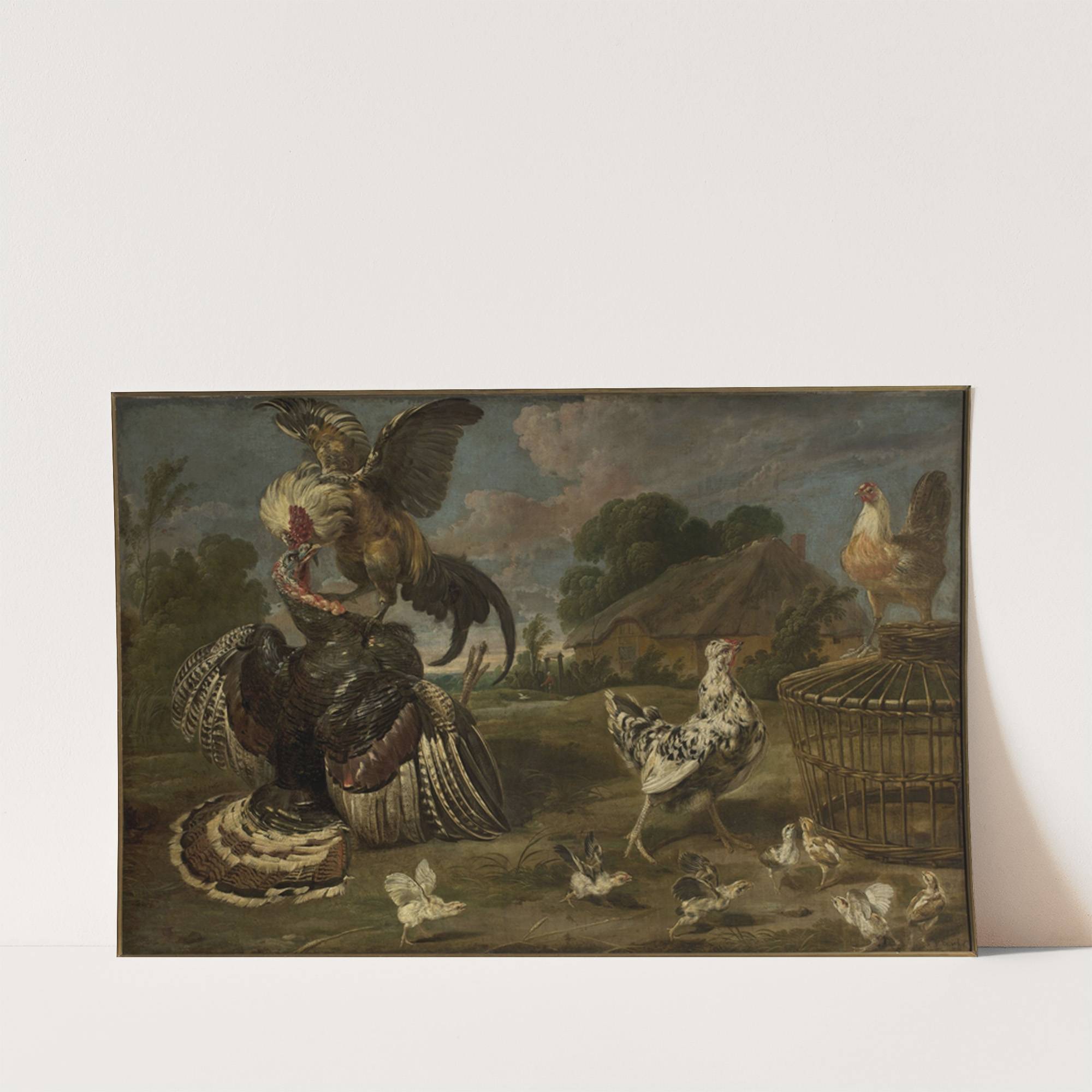 A turkey and a rooster by Paul de Vos  - Wall Art Print