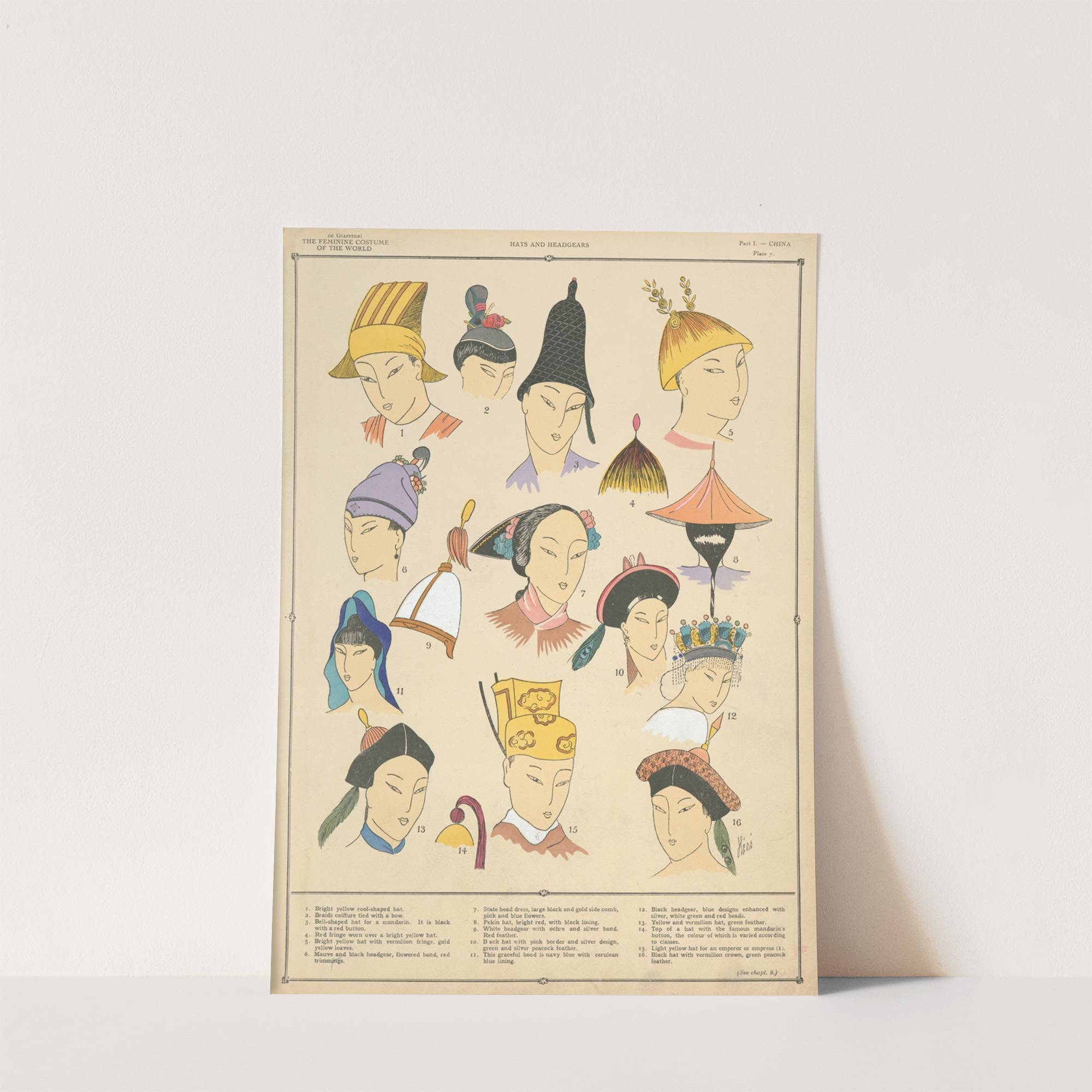 China – Hats and headgears by Paul Louis de Giafferri - Wall Art Print