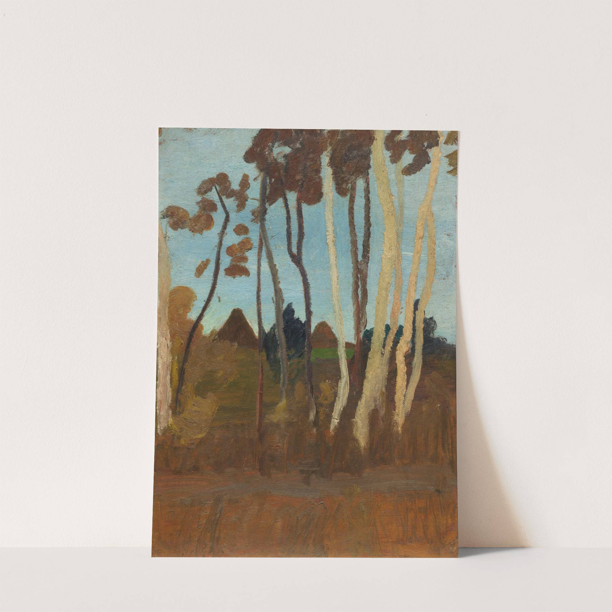 Landschaft mit Birken, im Hintergrund zwei Hausgiebel by Paula Modersohn-Becker - Wall Art Print