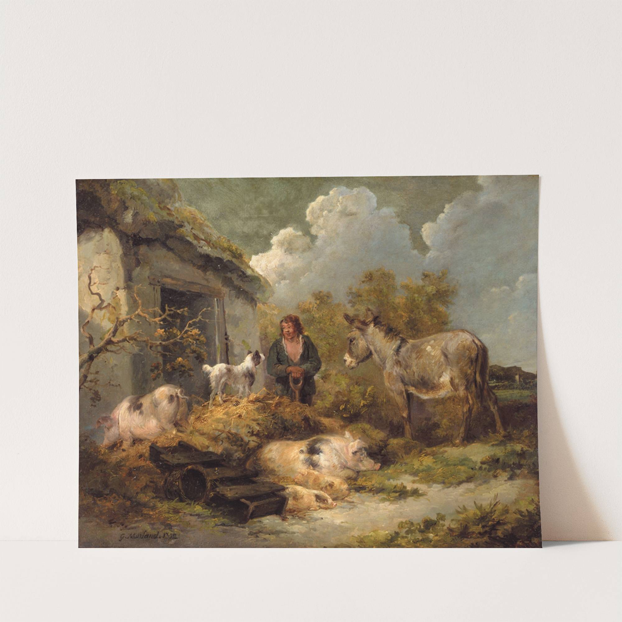 A Farm Boy With a Donkey, Pigs And a Sheep Dog by George Morland - Wall Art Print