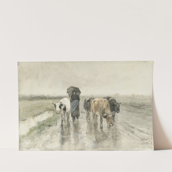 A Herdess with Cows on a Country Road in the Rain (1848 - 1888) by Anton Mauve - Wall Art Print