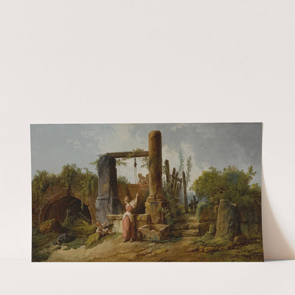 A peasant woman at a well by Hubert Robert - Wall Art Print