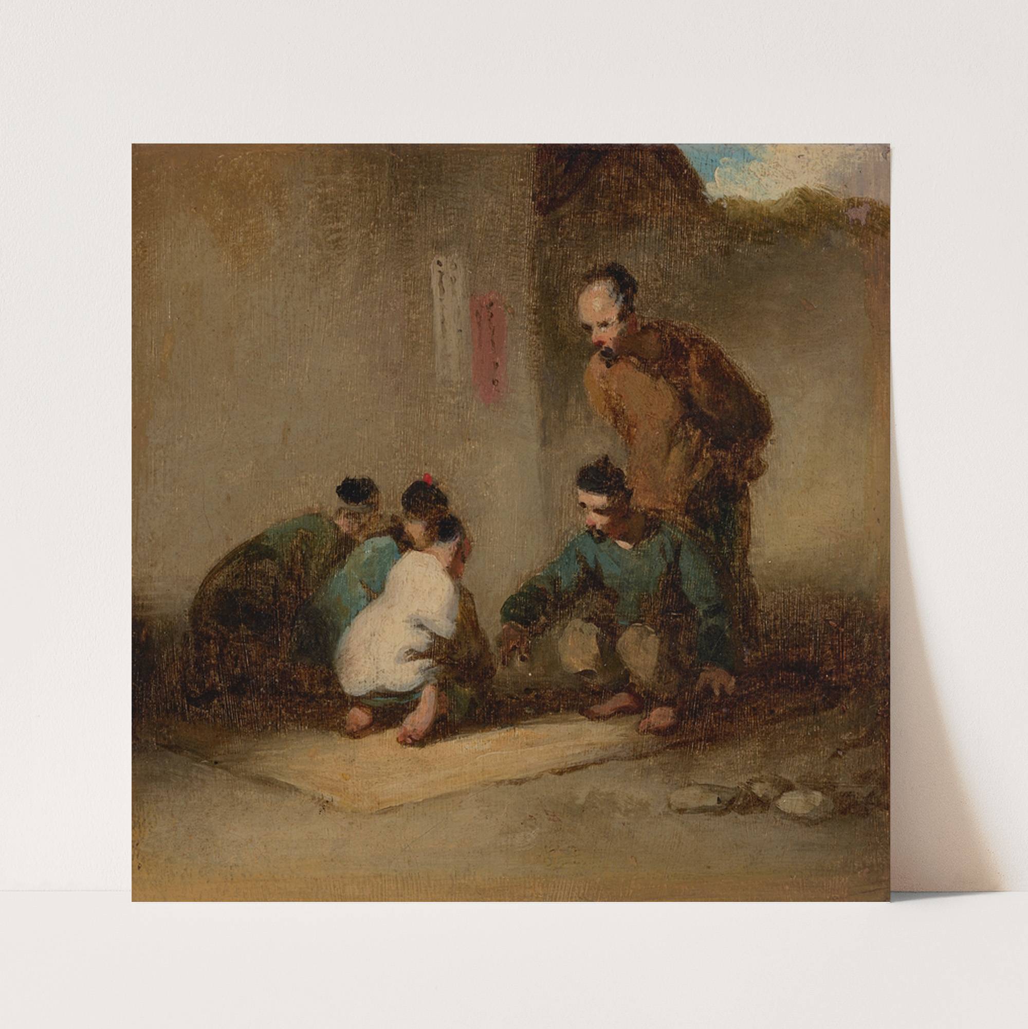 A street scene in Macau with five men gambling by George Chinnery - Wall Art Print