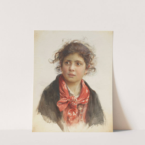 Bildnis eines scheuen Mädchens mit rotem Halstuch und zerzausten Locken by Ludwig Johann Passini - Wall Art Print