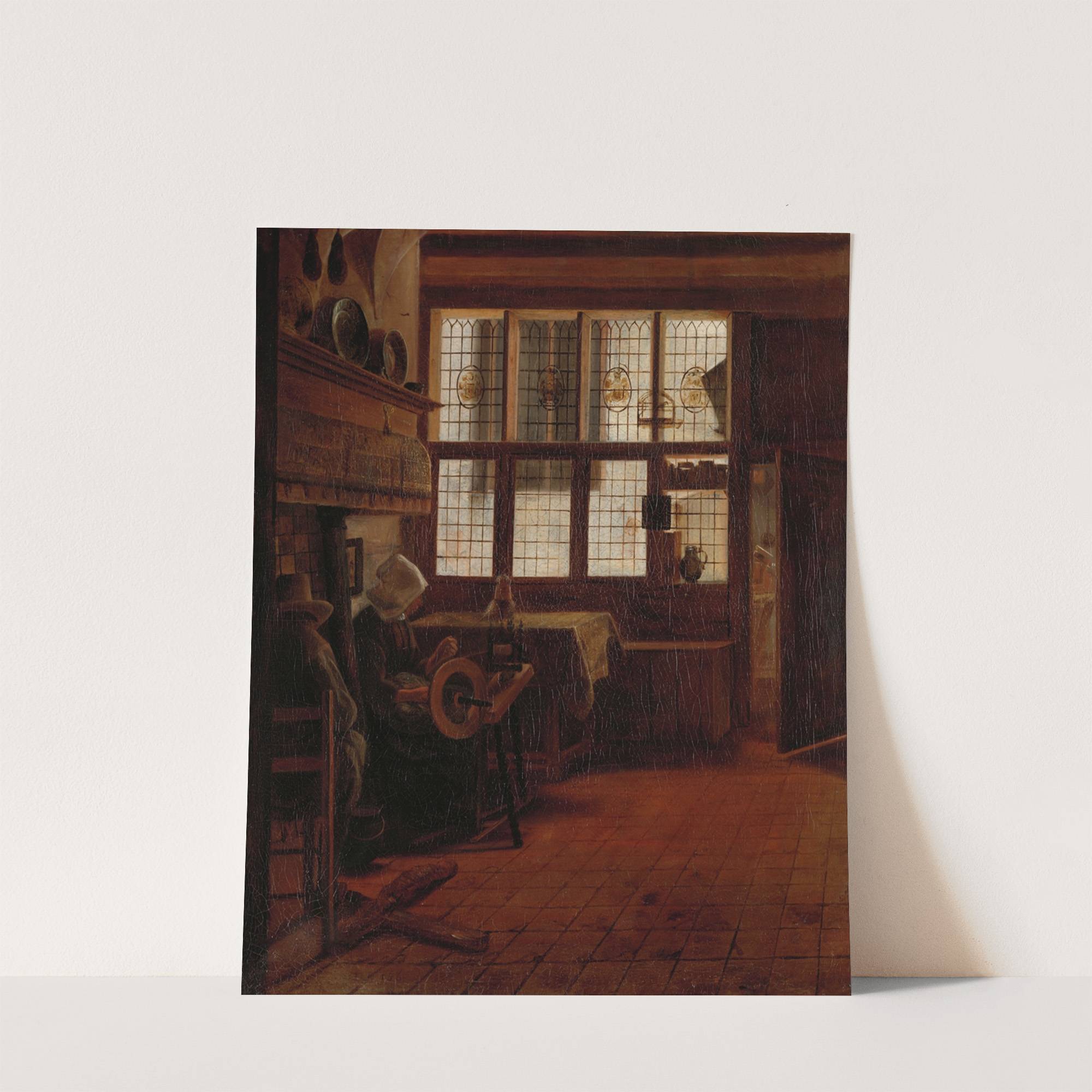 Interior with Woman at the Spinning Wheel by Esaias Boursse - Wall Art Print