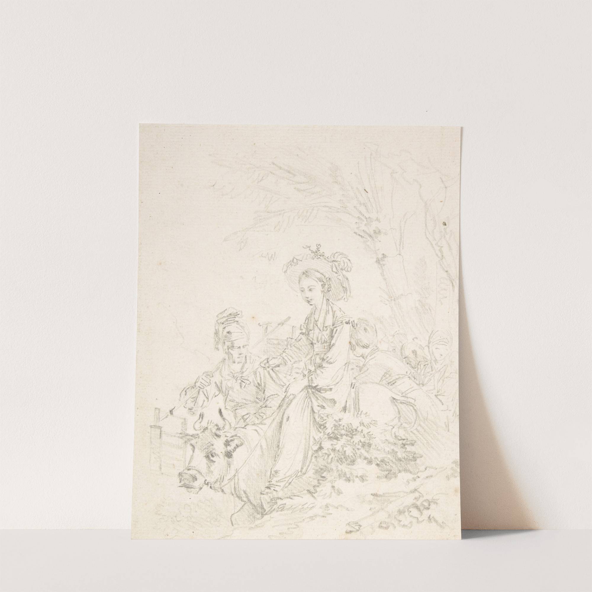 Peasant Girl Riding an Ox with Companions by François Boucher - Wall Art Print