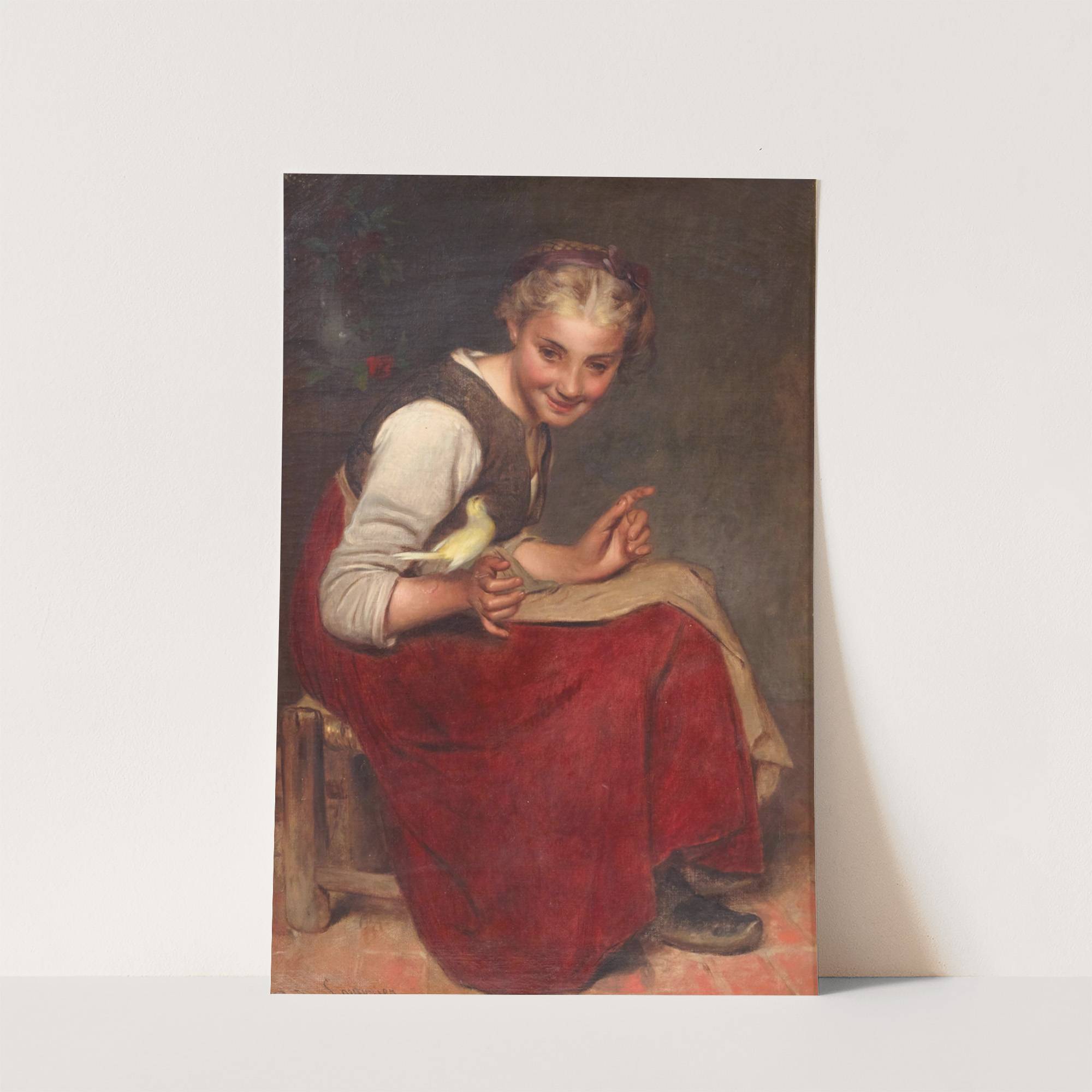 Playing with the Bird by Philibert Leon Couturier - Wall Art Print