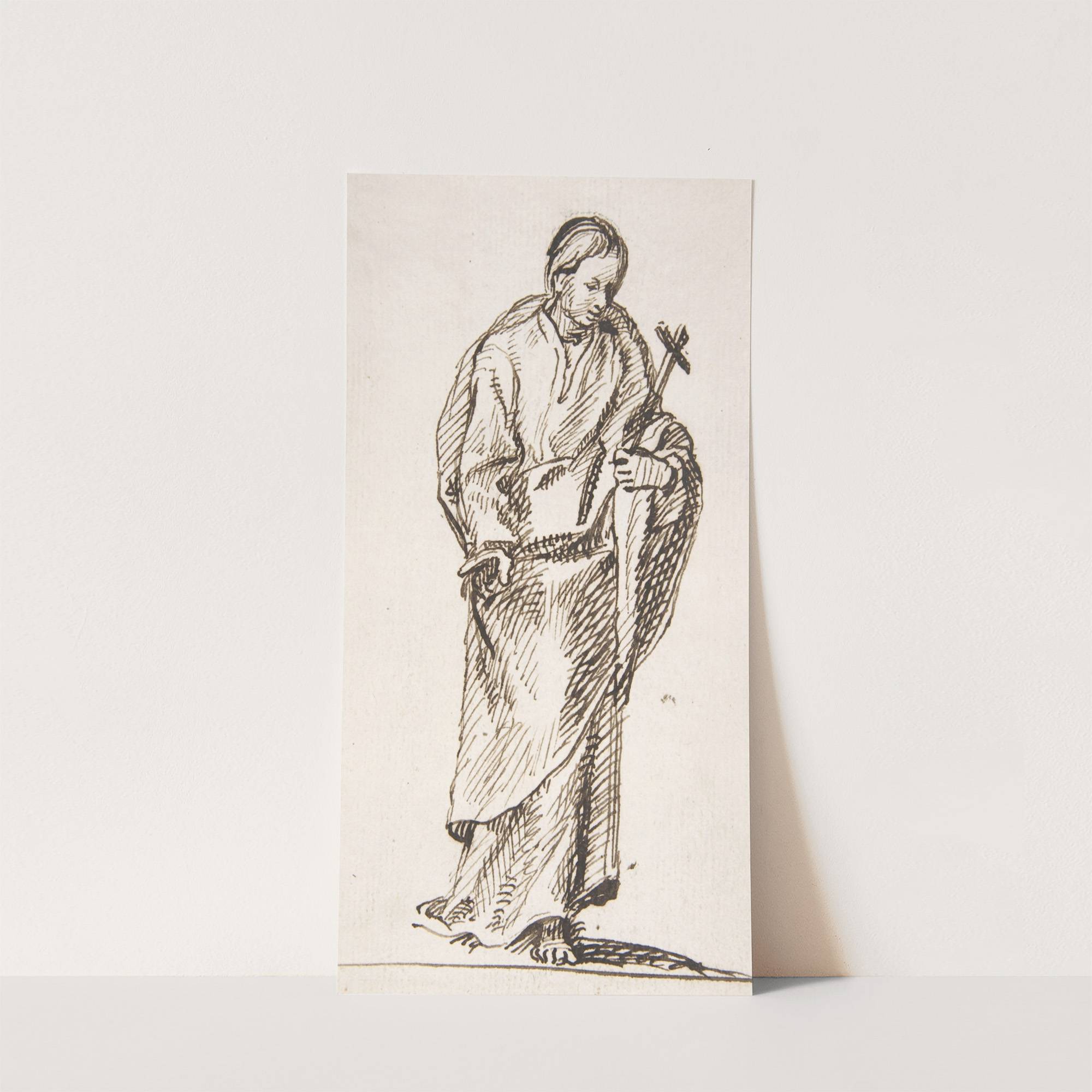 Standing Figure Holding Cross by Pedro Duque y Cornejo - Wall Art Print