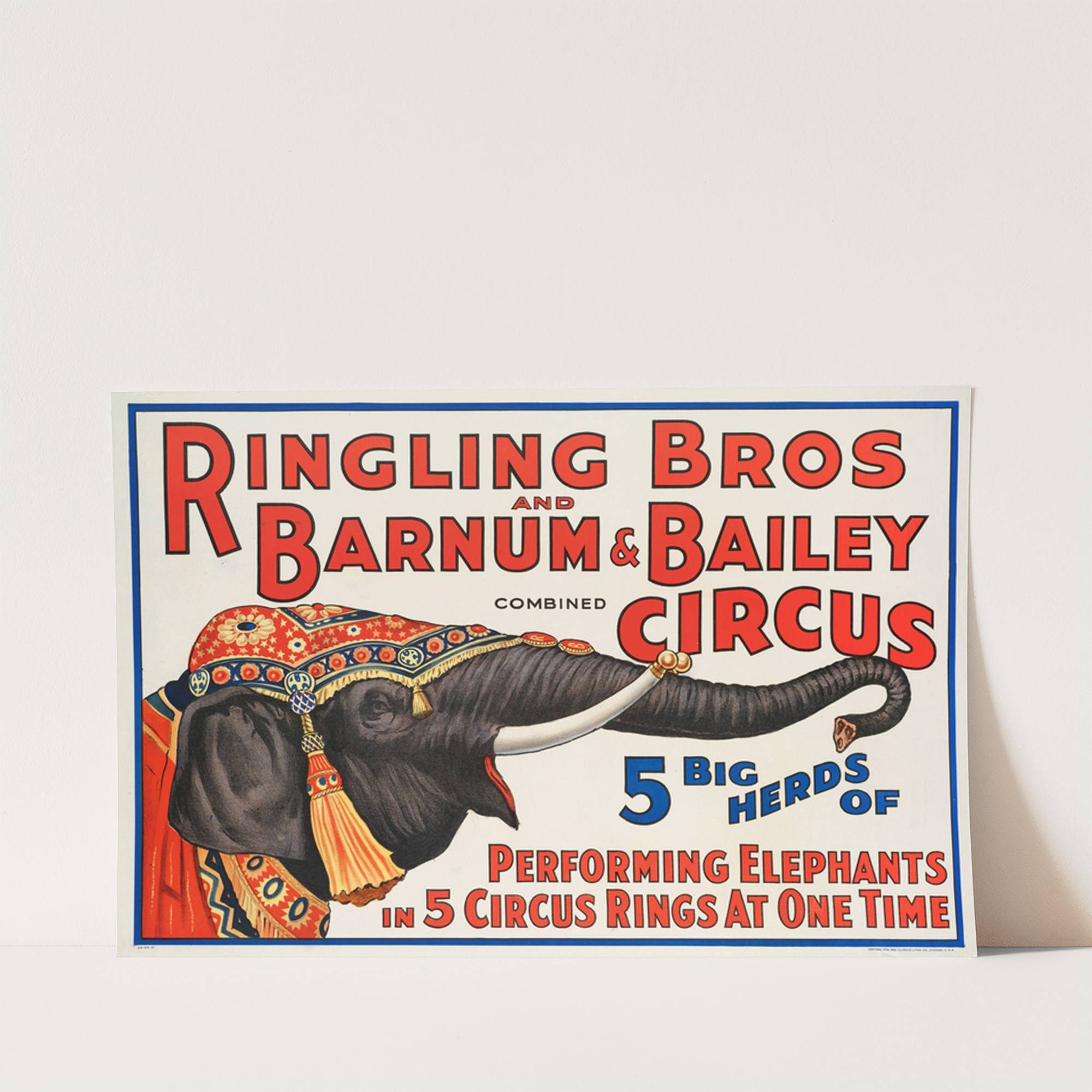 5 big herds of performing elephants in 5 circus rings at one time by Lucien Lefèvre - Wall Art Print