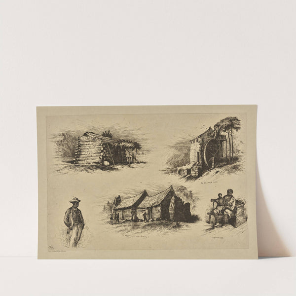 A slave cabin. The old grist mill. Sam. ‘Got any pies for sale, Aunty’ A picaninny. (1876) by Edwin Forbes - Wall Art Print