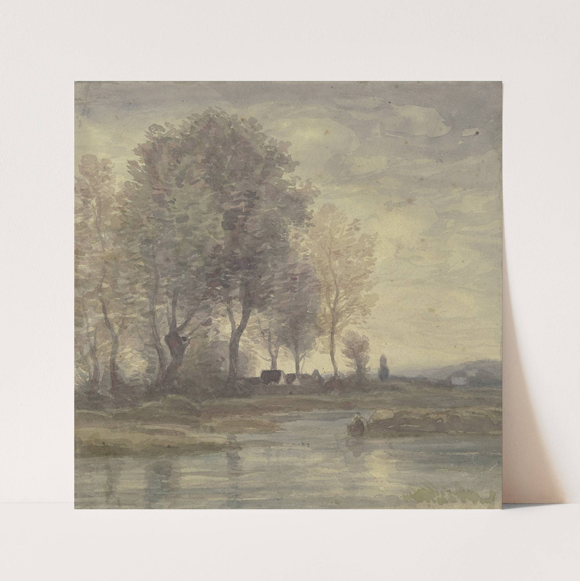 Gewässer mit Bauernhäusern unter hohen Bäumen by Peter Burnitz - Wall Art Print