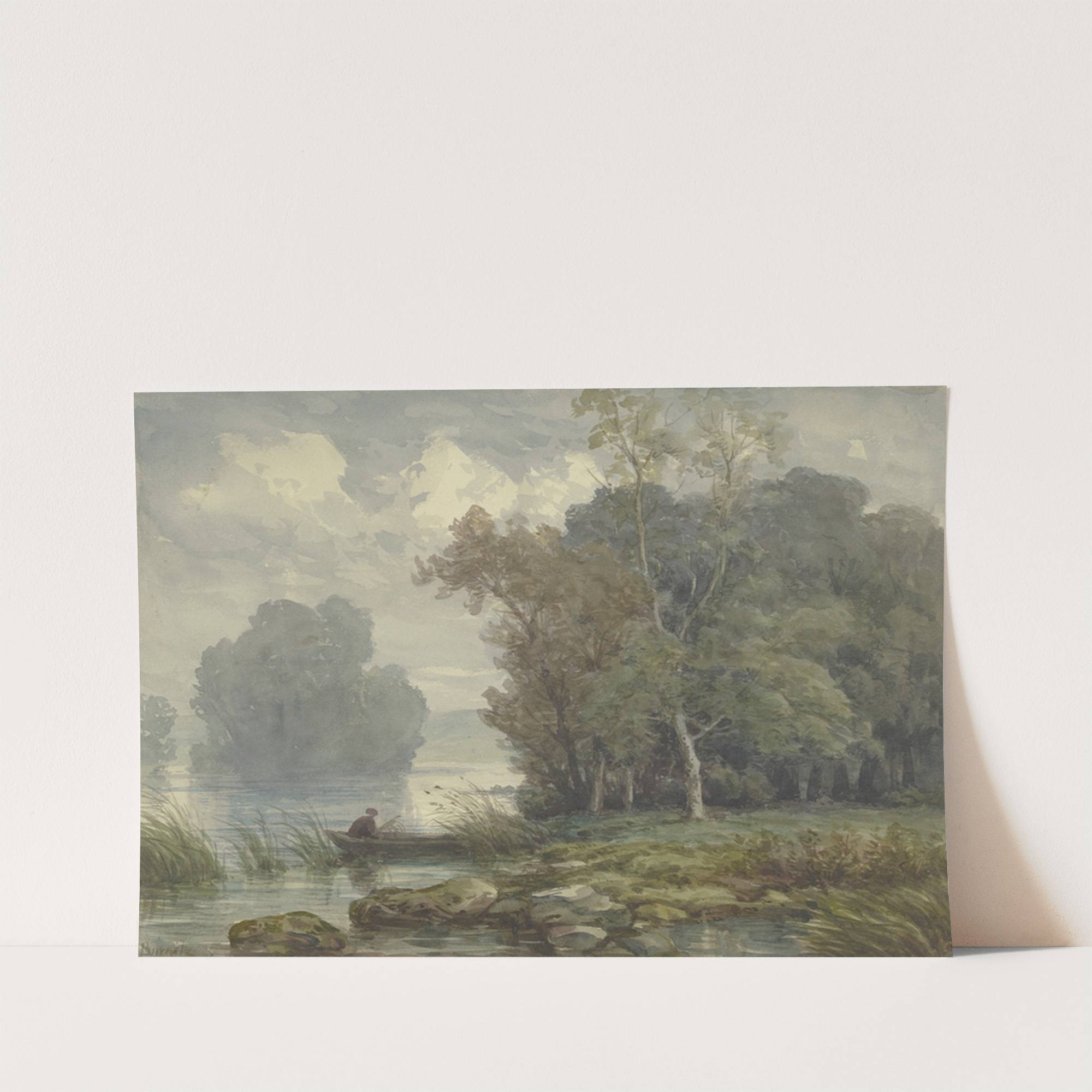 Jäger in einem Kahn an waldigem Ufer by Peter Burnitz - Wall Art Print