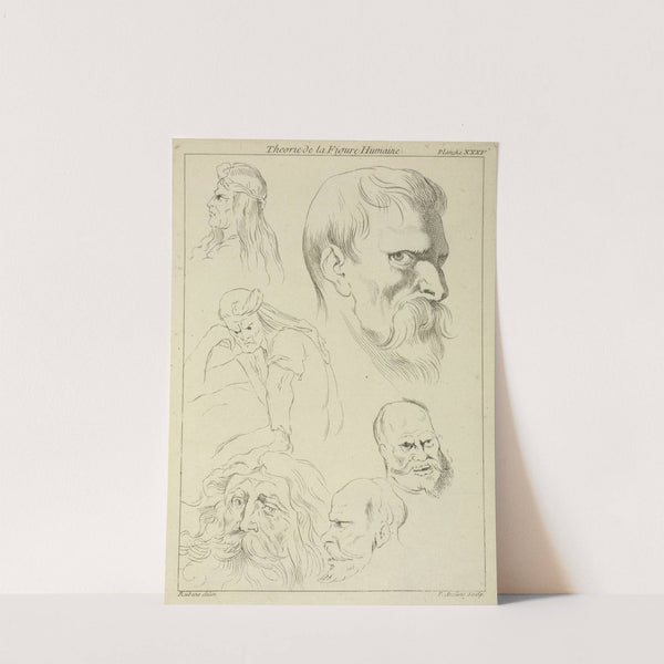 Five studies of men’s heads displaying various hair styles, beards and mustaches; one seated figure, half-length by Peter Paul Rubens - Wall Art Print