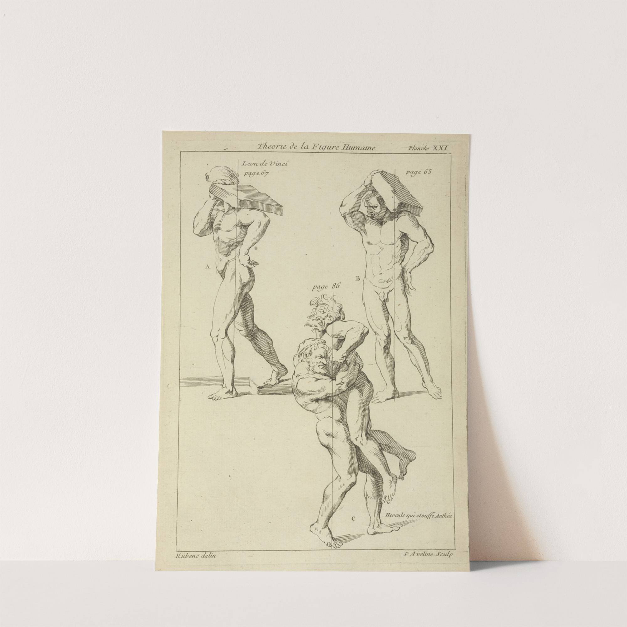 Four male figures; two bearing large books on their shoulders and the other two wrestling by Peter Paul Rubens - Wall Art Print