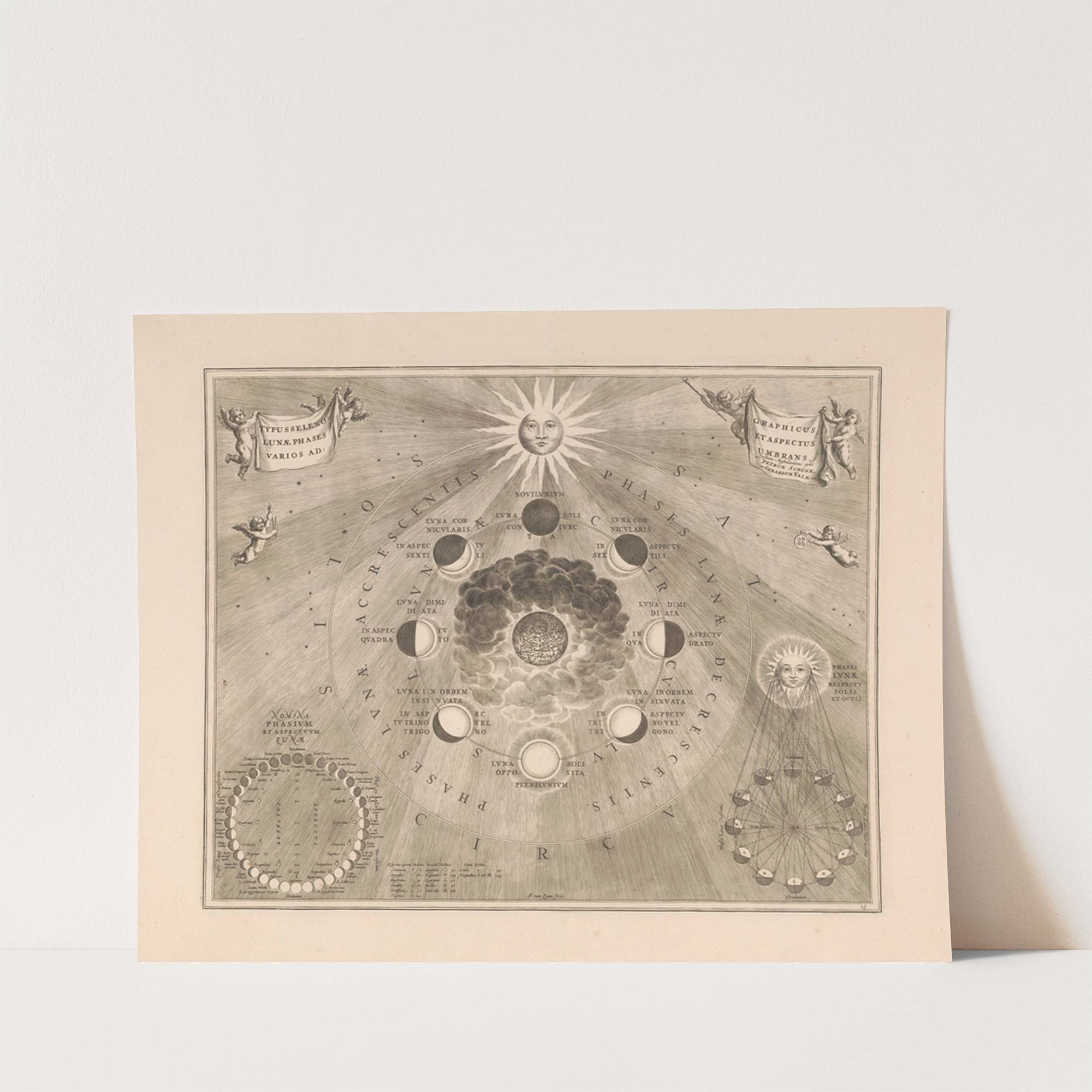 Hemelkaart van de baan van de maan rond de aarde en de schijngestalten van de maan (1660-1708) by Peter Schenk the Elder - Wall Art Print